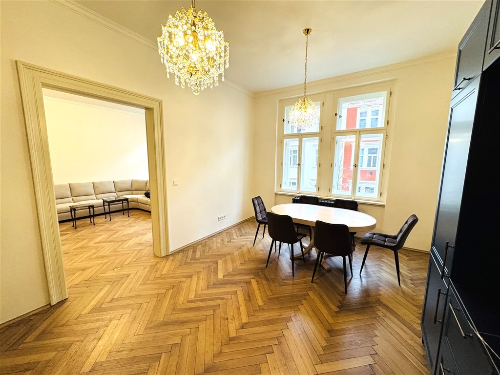 Nabízíme k pronájmu jedinečný zrekonstruovaný prostorný byt 3+1 (138 m2), který se nachází ve třetím nadzemním podlaží citlivě zrekonstruovaného…