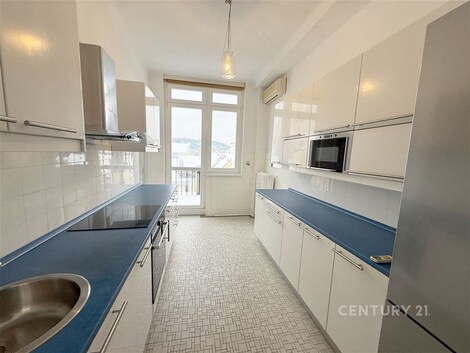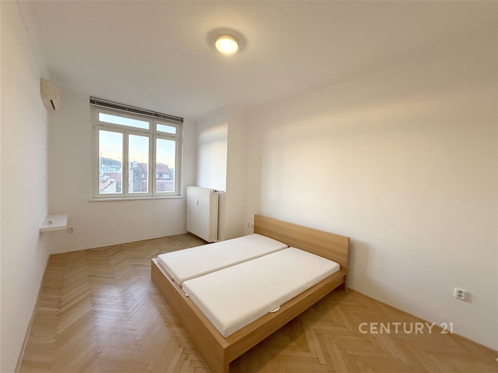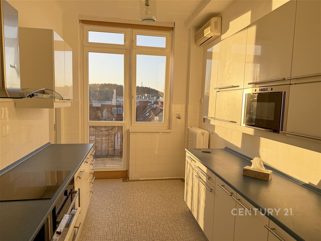 Dovoluji si Vám nabídnout pronájem velkého, slunného a extrémně tichého bytu s dispozicí 4+1 nacházejícího se v 6. patře činžovního domu. Dvě terasy nabízejí panoramatický výhled na dominanty Prahy - Petřín na jedné straně a budova Národního muzea na druhé. Dispozice zahrnuje tři velkorysé samostatné ložnice, které jsou neprůchozí a zajišťují tak maximální soukromí. Jedna z ložnic je vybavena vestavěnou knihovnou přes celou stěnu. Kuchyně je plně vybavena moderními spotřebiči (myčka, lednice, sporák, trouba). Za kuchyní se nachází praktická technická místnost s oknem a pračkou, kterou lze díky přirozenému světlu využít také jako pracovnu nebo šatnu. Koupelna disponuje vanou, toaleta s umyvadlem je samostatná. Další komora je na chodbě. V západně orientovaných místnostech je klimatizace. V celém bytě jsou nově a nákladně zrenovované parkety, které dodávají interiéru luxusní nádech. Zúčtovatelné poplatky jsou ve výši 10.000 (pro 4 osoby) Kč plus elektřina, která bude převedena na nájemníky. Kauce je ve výši 98.000 Kč. Provize RK je 49.000 Kč. Byt je ideální volbou pro ty, kteří hledají klidné bydlení v centru města s neopakovatelnou atmosférou. K okamžitému nastěhování.