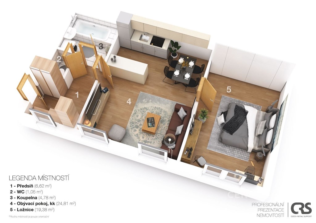 Exkluzivně nabízím pronájem částečně zařízeného bytu 2+kk, 60 m2, s parkovacím stáním ve dvoře uzavřeného areálu. Byt se nachází v 1. patře cihlového domu bez výtahu, ve velmi klidné a příjemné lokalitě mezi rodinnými domy na pražském Chodově. Orientace obou místností je na severozápad (do dvora). Byt je částečně zařízený; v bytě je mj. rozkládací sedací souprava, kuchyňský stůl s židlemi, v ložnici dvoulůžko s matracemi. Není zde, oproti fotografiím, televizor. Kuchyňská linka je se spotřebiči - el. indukční sporák, myčka nádobí, chladnička, mrazák, mikrovlnná trouba. V ložnici je velmi prostorná vestavěná skříň a na chodbě také několik praktických úložných skříněk. Koupelna je s vanou (zde také pračka), toaleta samostatná. Ve dvoře, pod okny bytu, je k dispozici jedno parkovací stání. K bytu přísluší vlastní plynový kotel. Nízké platby za služby 2.155 Kč za měsíc pro 2 osoby (v této částce je již zálohová platba na spotřebu vody, která bude vyúčtována). K nájmu je nutné přičíst zálohové platby na spotřebu el. energie a plynu (celkem asi 3.000 Kč, smlouvy budou přepsány přímo na nájemce). V okolí jsou školy i školky, (např. základní a mateřská škola Chodov, ul. Květnového vítězství, ZŠ Klíček, aj). Blízko je vodní nádrž Hostivař a hostivařský lesopark se zookoutkem a dalšími atrakcemi pro děti. Pár metrů od domu je zastávka autobusu Šperlova, z které je to na metro linky C st. Háje 5 minut, na Chodov 9 minut. Pěšky lze dojít na metro Opatov za 15 minut. U metra Chodov je největší obchodní centrum v Praze Westfield. Vratná kauce ve výši 23.155 tisíc Kč, provize RK 21.000 Kč plus DPH. Nastěhování možné dle dohody. Pro další informace a prohlídku bytu kontaktujte prosím makléřku.