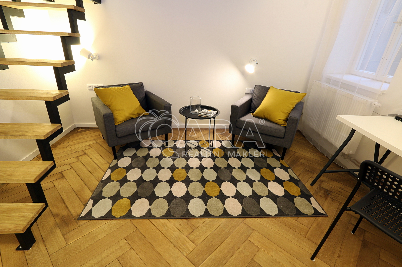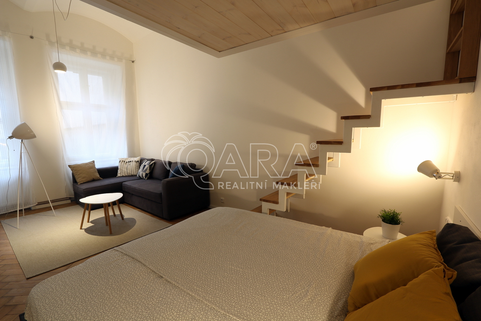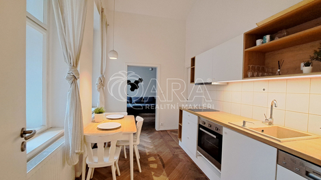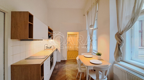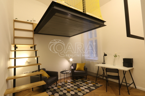 Nabízíme k pronájmu úžasný světlý a prostorný byt o dispozici 2+1 a celkové ploše 85 m2, který se nachází v hodně zvýšeném přízemí činžovního domu v samém srdci Prahy, v Hybernské ulici, přímo naproti Masarykovu nádraží. Byt je orientovaný do klidného vnitrobloku, takže navzdory poloze v centru města nabízí příjemný klid. Dispozice: Z předsíně vedou dveře na samostatnou toaletu, do koupelny jejíž součástí je druhá toaleta, sprchový kout, umyvadlo a pračka se sušičkou a do kuchyně. Z kuchyně jsou pak dveře do obou pokojů. Kuchyň je vybavena myčkou, troubou a varnou deskou. Ve větším pokoji je spací patro a šatní skříň. V menším pokoji je také spací patro a psací stůl. Byt se pronajímá, vyjma uvedeného, nezařízený. V bytě je etážové vytápění. V blízkosti domu je stanice metra B „Náměstí Republiky“, tramvajové zastávky, Masarykovo nádraží a obchodního centra Palladium. Náklady: Nájemné: 25 000 Kč / měsíc Zálohy: 2 000 Kč (voda, osvětlení a úklid společných prostor, svoz odpadu) Elektřina a plyn se přepisuje na nájemce Kauce: 50 000 Kč Provize RK: 25 000 Kč