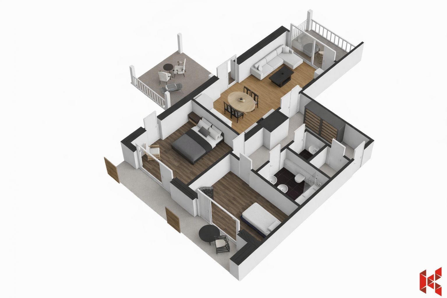 Nabízíme Vám nadstandardně prostorný, dokončený byt 3+KK o ploše 119,2 m2 s terasou 37,4 m2 v komorním projektu tří bytových domů v Rezidenci Klíčov…