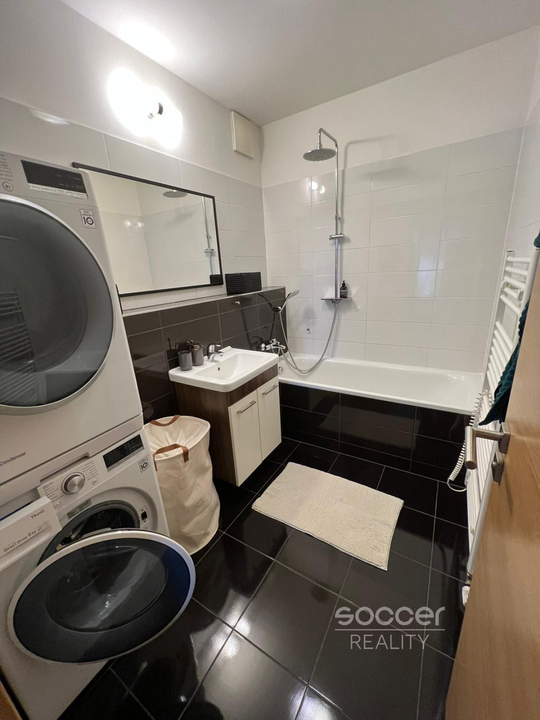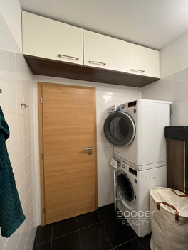 Soccer Reality zprostředkuje k pronájmu kompletně zařízený a vkusně zrekonstruovaný byt v moderním stylu. Součástí vybavení je nová pračka se sušičkou, komfortní postel s japonským futonem a plně vybavená kuchyň s vestavěnou chladničkou a myčkou, která splní nároky i náročnějších nájemců. Byt je umístěn v cihlovém domě v 5. podlaží s výtahem a nabízí praktický přímý vstup z garážových prostor. Dům se nachází v lokalitě s kompletní občanskou vybaveností, která zajišťuje pohodlné městské bydlení bez kompromisů. Velkou předností je výborná dopravní dostupnost - tramvajová zastávka U Elektry je vzdálena pouhých 5 minut chůze, v docházkové vzdálenosti se nachází také stanice metra Kolbenova. V blízkém okolí je rovněž O2 Arena a další možnosti kulturního i sportovního vyžití.