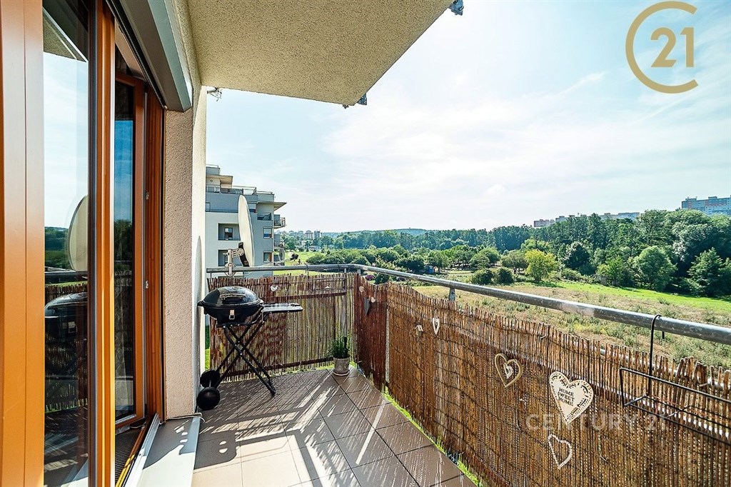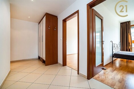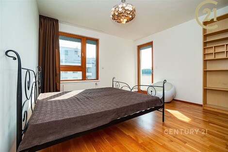 Nabízíme k pronájmu prostorný a světlý byt 4+kk o celkové ploše 100 m2, situovaný ve 3. podlaží bytového domu z roku 2008 v klidné ulici Mattioliho, Praha 10 - Hostivař. Jižní orientaci má obývací pokoj s kuchyňským koutem (34,4 m2) se vstupem na hlavní balkon (5,8 m2) s otevřeným výhledem do zeleně tichých meandrů Botiče a též nejmenší ložnice pracovna (10,1 m2). Východně orientované jsou dvě ložnice - o velikosti 14,6 m2 a 15,3 m2, přičemž větší z nich má balkon (3,3 m2) a přímý vstup do privátní koupelny s WC (3,1 m2). Na východ je orientován i kuchyňský kout s výstupem na menší balkon, který je sdílený s ložnicí. Vstup do všech místností (s výjimkou pracovny) je z prostorné centrální haly (12,7 m2). Úložné prostory poskytuje samostatná šatna (3,7 m2), vestavěná skříň u vstupu a dvě uzavíratelné garáže ve společné podzemní garáži. Byt je proveden ve velmi solidním standardu: dřevěná okna, předokenní elektricky ovládané zatemňovací žaluzie (centrální i samostatné ovládání), podlahové konvektory v obývacím pokoji a kuchyňském koutě, bezpečnostní vstupní dveře, zabezpečovací systém, sanita Ideal Standard, baterie Grohe. Byt je vybaven kuchyňskou linkou se spotřebiči Electrolux (lednice s trojkomorovým mrazákem, myčka, sklokeramická varná deska, trouba), pračkou a koupelnovým nábytkem ve větší koupelně. Je částečně zařízen - jídelní stůl se židlemi, sedačka, postel a knihovna v ložnici, vestavěné skříně a nábytek na míru, pracovní stůl a sedačka v pracovně. Lokalita nabízí kompletní občanskou vybavenost a dobré dopravní spojení. V pěší dostupnosti se nachází OC Hostivař, mateřské, základní i střední školy, ZUŠ, sportovní areály, Toulcův dvůr, možnosti hiporehabilitace a vyjížděk na koních, obchody a služby. Ke rychlému spojení s centrem města (12 min. na Hlavní nádraží) je možno využít nedaleký nově vybudovaný přestupní terminál na Zahradním Městě, který umožňuje přestup z vlaků na lince PrahaBenešov na tramvaje a autobusy, které spojují Zahradní Město mimo jiné také se Spořilovem (9 min.), Jarovem (16 min.), Opatovem (19 min.) či Malešicemi a Vinohrady. Zastávky TRAM 22, 26, 97; BUS 177 - Sídliště Zahradní Město nebo OC Hostivař (též BUS 154) cca 7 min. chůze. Nájemné 38.000 Kč. plus 7.000 Kč. zálohy na služby plus elektřina na nájemce. Kauce 70.000 Kč. Odměna RK ve výši měsíčního nájmu plus DPH.