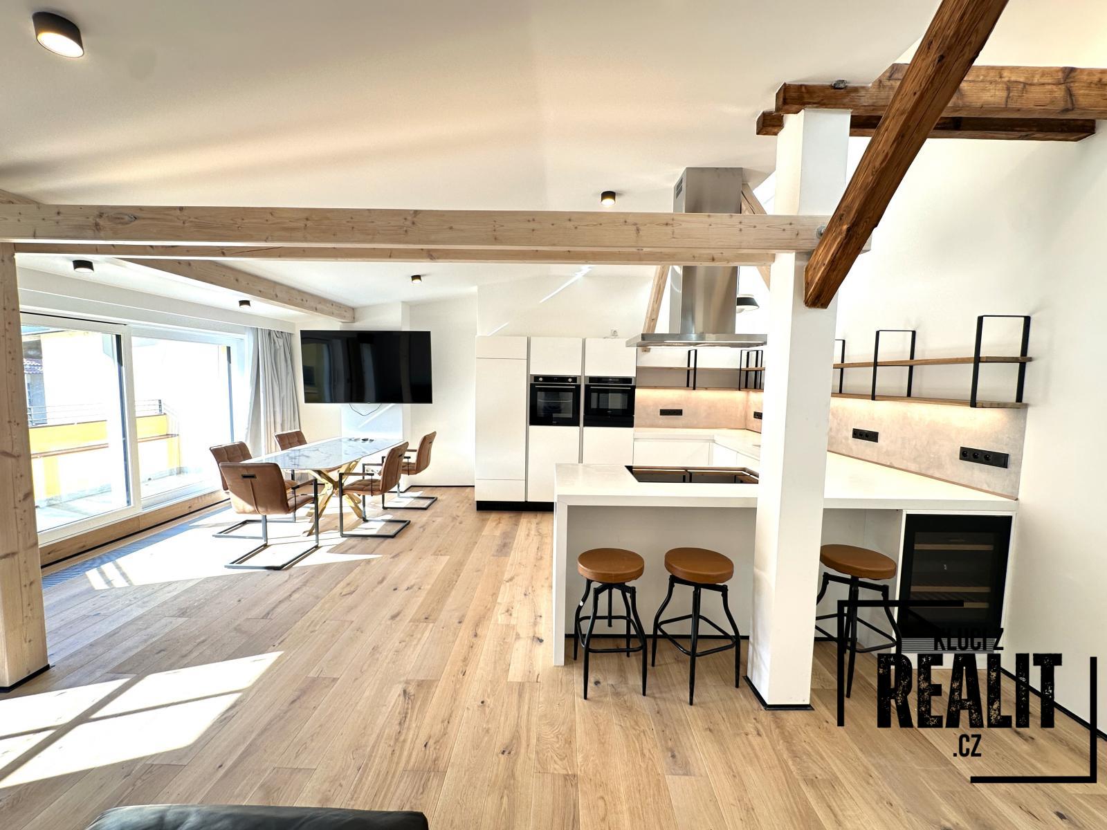 K dlouhodobému pronájmu nabízíme plně klimatizovaný podkrovní byt s terasou a nadstandartním vybavením o dispozici 4+kk a výměrou 136 m2, situovaný ve 4. patře historického domu s výtahem v prestižní lokalitě Malé Strany, v ulici Újezd. Byt je vybaven vestavěnými skříněmi, sedací soupravou, jídelní sestavou, televizí, pračkou, sušičkou a plně vybavenou kuchyňskou linkou. Všechny pokoje jsou vybaveny klimatizací. V bytě se nachází prostorná koupelna s bidetovým záchodem s volně stojící vanou a sprchovým koutem, ze které je přístup do hlavní ložnice a jednoho z dětských pokojů. Ze vstupní chodby je přístup do technické místnosti, dětského pokoje, koupelny se sprchovým koutem s infračerveným světlem a bidetovým záchodem pro hosty a obývacího pokoje s prostornou a vybavenou kuchyňskou linkou a přístupem na terasu, která směřuje do klidného vnitrobloku s výhledem na vrch Petřín. Kuchyň je vybavena myčkou, troubou, indukčním vařičem, lednicí, mrazákem, mikrovlnou troubou, vinotékou a ohřívačem talířů. K nastěhování od 1.5.2026. Nedaleko domu je tramvajová zastávka Pražské jezulátko. V místě skvělá dostupnost MHD, obchodů, restaurací, škol a školek. Poplatky činí 1 200 Kč / osoba a převod energií (plyn+elektřina). Kauce 100.000,- Kč. Zájemce je srozuměn s provizí realitní kanceláře ve výši jednoho měsíčního nájmu + DPH.