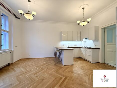 Investice do historie z konce 19. století, nadčasové architektury a lokality, která kombinuje klid, prestiž i dlouhodobou hodnotu. Vítej v ulici Lužická, kde je právě tento byt o dispozici 3+1,109,4 m ukázkou toho, jak může vypadat citlivě zrekonstruovaný byt v klasickém městském domě, který si zachoval svůj původní charakter a zároveň splňuje nároky moderního bydlení. Současný majitel byt zakoupil přibližně před dvaceti lety a více než patnáct let jej dlouhodobě pronajímal. V průběhu let prošel byt kompletní a promyšlenou rekonstrukcí, díky které je dnes ve výborném technickém i estetickém stavu a připravený k okamžitému nastěhování. Při rekonstrukci byl kladen důraz na zachování původních architektonických prvků v interiéru zůstaly mosazné detaily, původní dvoukřídlé dveře a krásné dřevěné parkety, které se nachází v celém bytě. Okna prošla částečnou repasí včetně výměny těsnění. Samozřejmostí jsou kompletně nové rozvody elektřiny s hlavním jističem 25 A. Dominantou bytu je obývací pokoj se štukovými stropními dekoracemi a sádrovým stropem, který podtrhuje výšku místností a noblesní atmosféru celého prostoru. Na obývací část navazuje nová kuchyňská linka s barovým pultem a vestavěnými spotřebiči, která nabízí dostatek místa nejen pro vaření, ale i pro plnohodnotný jídelní stůl. Kuchyň a obývací pokoj jsou propojeny replikami dveří které lze ponechat otevřené nebo uzavřít podle potřeby. Byt je prakticky řešen kolem prostorné centrální chodby, ze které je přístup do všech místností. Velkou výhodou jsou dvě koupelny ( jedna se sprchou a druhá s vanou), přičemž každá disponuje vlastní toaletou ideální řešení pro rodinné bydlení nebo pohodlný každodenní provoz. Součástí bytu je také technická místnost s plynovým kotlem starým přibližně čtyři roky, který zajišťuje vytápění i ohřev teplé vody. Dispozičně je byt velmi dobře orientován obývací část s kuchyní směřuje na jižní stranu do ulice Lužická, kde se v letních měsících otevírá příjemný výhled do korun stromů a stromové aleje. Ložnice a další pokoje jsou orientovány na sever do vnitrobloku, kde se naproti nachází budova využívaná jako škola s dětským hřištěm během pracovních dnů 8h -16h zde uslyšíte přirozený dětský ruch a smích, který dotváří živou, ale přátelskou atmosféru místa. Dům jako celek prošel kompletní rekonstrukcí byly renovovány společné prostory, instalován výtah v mezipatře a díky půdní vestavbě vznikla také nová střecha. Velkou výhodou je nízký počet bytů na patře pouze dva, což zajišťuje klid a soukromí. Součástí společných prostor je udržovaná předzahrádka / zahrada náležící k domu, kde je vymezený prostor pro grilování v letních měsících určený výhradně pro vlastníky jednotek v domě. V uliční úrovni domu bylo vytvořeno 5 garážových zakladačů. Jedno z těchto zakladačů náleží k tomuto bytu. Rádi Vám detailně představíme v samostatném videu. Byt je ihned k dispozici. Měsíční poplatky včetně fondu oprav činí 10 132 Kč, elektřina přibližně 1 700 Kč a plyn 2 000 Kč.