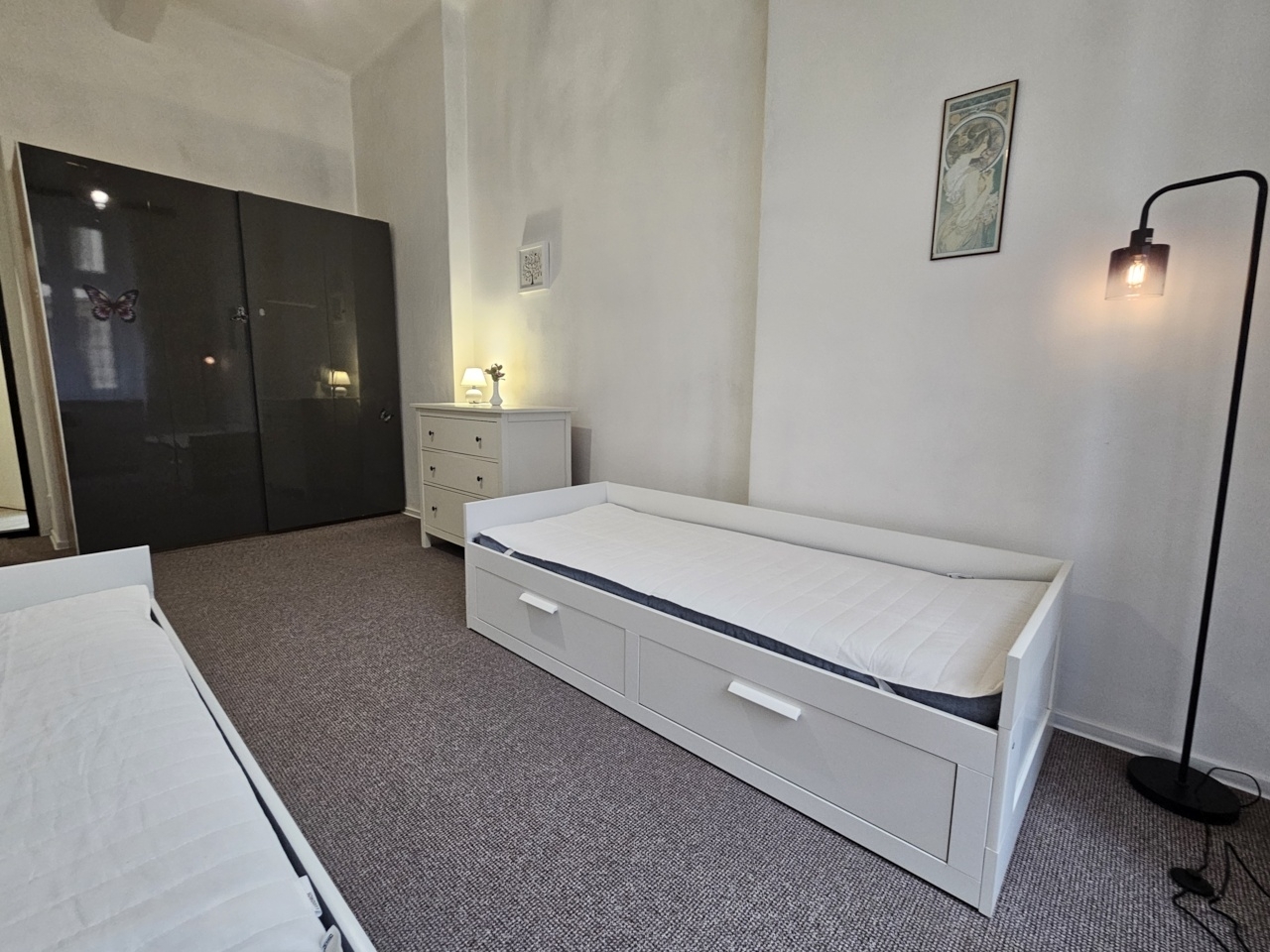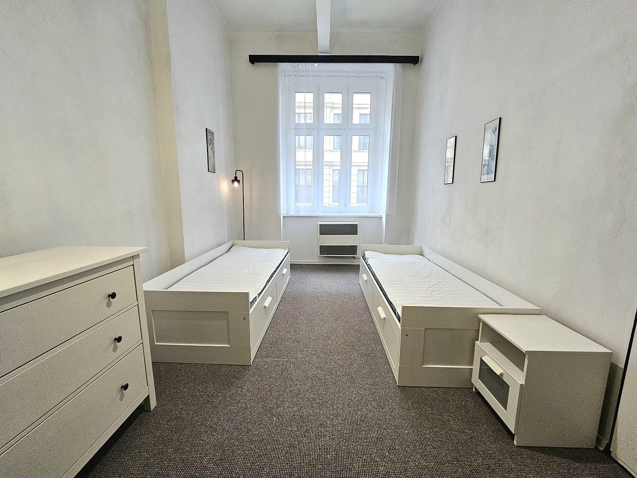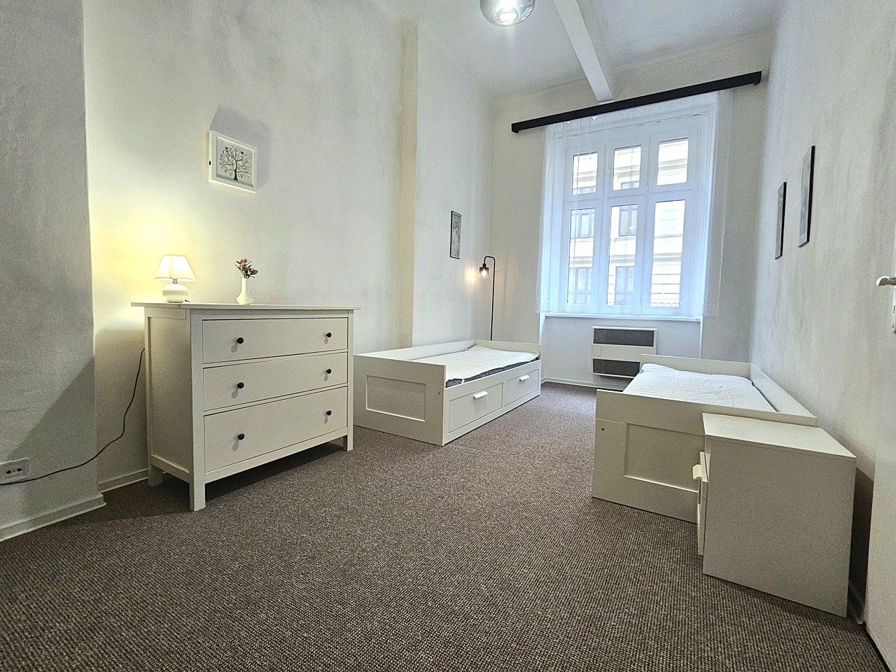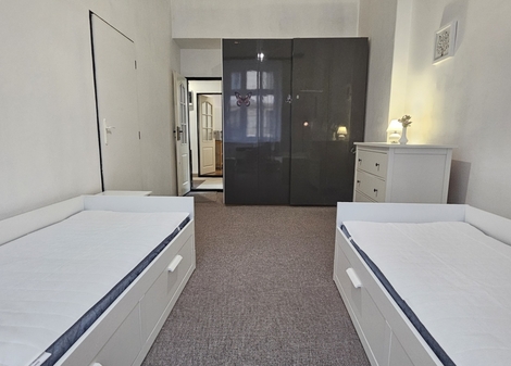 Pronájem bytu - velmi pěkný, zrekonstruovaný, kompletně zařízený byt 3kk, 70 m2 včetně prostorné komory v bytě, Praha 8 - Libeň, ulice Palmovka, 1.patro v pěkném udržovaném cihlovém domě bez výtahu. Dům se nachází pouhých 100 m od tram, busu a metra B - Palmovka v klidné jednosměrné ulici. Dům je slušný a klidný a díky orientaci bytu je i příjemně tichý. Okna bytu jsou situována na severovýchod do klidné jednosměrné ulice (2 neprůchozí ložnice) a na jihozápad do klidného dvora (obývací pokoj s kuchyňským koutem a komorou). Byt je po právě dokončené rekonstrukci. Celý byt je vyštukovaný a vymalovaný bílou barvou, má nové el. rozvody, kompletně zrekonstruovanou koupelnu, nové položené koberce, nový moderní bojler 80L s eko režimem, nový kombinovaný sporák a novou pračku. Byt je plně vybavený nábytkem včetně kuchyňské linky s novým sporákem, digestoří, lednicí s mrazákem, mikrovlnnou troubou, rychlovarnou konvicí a TV. Nábytek je viz foto včetně 4 rozkládacích postelí s novými matracemi a úložným prostorem. Každou postel je navíc možné rozložit na dvojlůžko o šířce 160 cm x 200 cm (v případě potřeby je možné některou postel odvézt). V obou ložnicích je také velká vestavěná šatní skříň. V koupelně je vana, umývadlo a nová pračka. WC je zvlášť. Na podlaze jsou nové koberce a dlažba. Topení je výkonnými WAW, ohřev vody zajišťuje nový moderní eco bojler. Ve dvoře domu je možné sušit prádlo. Parkování je možné na ulici. Dům se nachází v klidné jednosměrné ulici. Veškerá občanská vybavenost je v místě. Pouhých 100 m od domu je zastávka tram, busu a metra B - Palmovka s přímým spojením do samotného centra (5 min. metrem nebo 7 min. tram Florenc). Byt je výhradně nekuřácký a je vhodný pouze pro spolubydlení max 4 osob (max 2 páry nebo max 4 pracující či studenti). Domácí zvířátka nejsou povolena. Byt je volný ihned. Vratná kauce je ve výši 30.000 Kč. Majitel preferuje pouze dlouhodobý pronájem, tj. na dobu min. 1 roku či déle.
