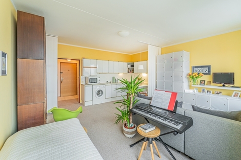 Zájemcům o zajímavou investiční příležitost nabízíme ke koupi velmi pěkný a udržovaný byt 1+kk v Praze-Kamýku. Jednotka je umístěna ve 12. nadzemním (předposledním) podlaží dobře udržovaného a revitalizovaného bytového domu. Je dostatečně vzdálena od běžného ruchu ulice, a kromě krásného výhledu tak nabízí i klidné a příjemné bydlení. Dispozice bytu zahrnuje vstupní předsíň s velkou šatní skříní, koupelnu se sprchovým koutem a WC a prostorný pokoj s kuchyňskou linkou a dostatkem místa na spací kout i obývací část. Byt má zděné jádro a paní nájemnice, která v bytě dlouhodobě pobývá, se o něj velmi pečlivě stará. Aktuálně je nájemní smlouva uzavřena na dobu neurčitou. Byt je tedy vhodný zejména pro investory, kteří ocení kvalitního a stabilního nájemníka, se kterým nebudou mít žádné starosti. Více informací o nájemním vztahu a výši nájemného rádi poskytneme před samotnou prohlídkou. Lokalita je bezesporu zásadním benefitem této nabídky. Přímo u domu je k dispozici supermarket a také zastávka MHD, odkud se v minutových intervalech dostanete do deseti minut na metro linky C Kačerov, a dále pak kamkoliv potřebujete v rámci celé Prahy. V případě zájmu o více informací a termín prohlídky nás neváhejte kontaktovat. Těšíme se na vás.