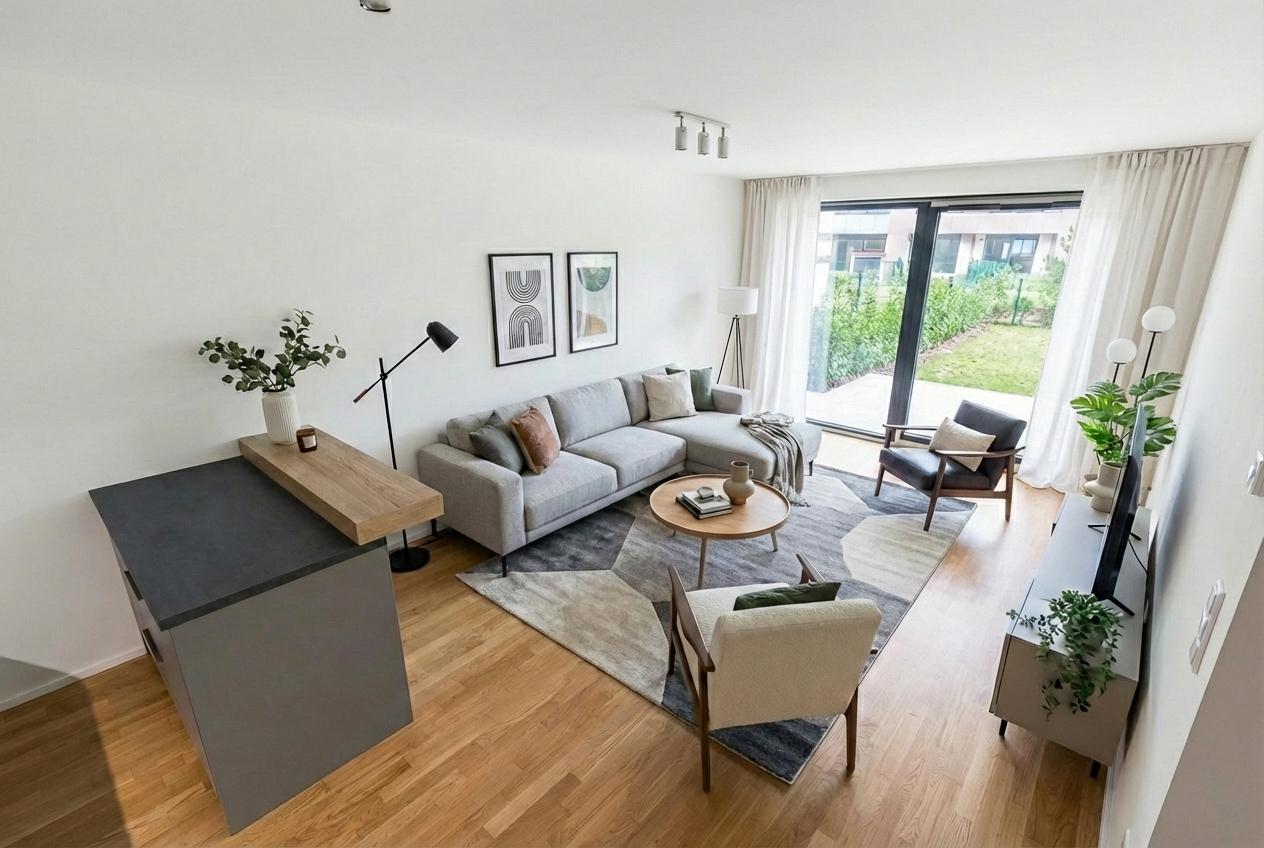 Výjimečný byt 3+KK o ploše 69,4 m2 s balkónem 17,3 m2, zahradou v celkové výměře 93,7 m2 a sklepem 3,9 m2 v oblíbené lokalitě Žižkov. Byt je orientován do uzavřeného vnitrobloku, všechny pokoje mají přístup přes vlastní terasu do zahrádky, která je k využití pouze pro majitele tohoto bytu. Obývací pokoj i ložnice jsou orientovány na východ. Byt je svojí dispozicí a umístěním vhodný k vlastnímu bydlení, ale i jako investice na pronájem. Je zařízen kuchyňskou linkou včetně spotřebičů (lednice, trouba, indukční varná deska, mikrovlnná trouba, myčka), vestavěnou skříní v předsíni, koupelnovým nábytkem, včetně osvětlení a konzolí na závěsy. K bytu je možné přikoupit garážové stání v budově. Kvalitní provedení a vybavení, předokenní žaluzie, dřevěná okna s izolačními trojskly, velkoformátové obklady a dlažby v koupelnách, sanita Laufen Pro, bidetové sprchy, dubové podlahy s podlahovým vytápěním, nadstandardní výška dveří 2,1 m, videotelefon, přístupy do budovy na čip. Centrum města s veškerou občanskou vybaveností, zastávka MHD před domem, ale i blízkost parku a zeleně (Riegrovy sady 5 minut pěšky), v sousedství Vysoké školy ekonomické v Praze, v okolí mnoho restaurací a všechny služby. Pro bližší informace a prohlídku nás kontaktujte. Součástí prodeje je kuchyňská linka včetně vestavěných spotřebičů, vestavěné skříně v chodbě a koupelnový nábytek. Ostatní vybavení interiéru zobrazené na fotografiích nebo vizualizacích je pouze ilustrativní a není předmětem prodeje. .. Exceptional 3+kitchen apartment with an area of 69,4 m2 with a terrace 17,3 m2, garden with a total area of 93,7 m2 and a cellar of 3,9 m2 in the popular location of Žižkov. The apartment is oriented to a private courtyard, all rooms have access via their own terrace to the garden, which is for use only by the owner of this apartment. The living room and bedroom are oriented to the east. The apartment is suitable for own living, but also as an investment for rent. It is furnished with a kitchen unit including appliances (fridge, oven, induction hob, microwave oven, dishwasher), a built-in wardrobe in the hallway, bathroom furniture, including lighting and curtain brackets. It is possible to purchase a garage space in the building with the apartment. High-quality design and equipment, window blinds, wooden windows with triple-glazed insulation, large-format tiles and floor tiles in the bathrooms, Laufen Pro sanitary ware, bidet showers, oak floors with underfloor heating, above-standard door height of 2.1 m, videophone, chip access to the building. City center with all civic amenities, public transport stop in front of the house, but also close to the park and greenery (Riegrovy sady 5 minutes walk), in the neighborhood of the University of Economics in Prague, many restaurants and all services in the area. For more information and a tour, contact us. The sale includes a fitted kitchen with built-in appliances, built-in wardrobes in the hallway, and bathroom furniture. Other interior equipment shown in photographs or visualizations is for illustrative purposes only and is not included in the sale.