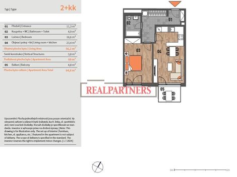 Terra Barrandov Praha 5, ulice Silurská 2+kk 54,2 m2 s lodžií 8,6 m2 ve 3. nadzemním podlaží Orientace bytu: ZS Nabízíme moderní byt 2+kk ve 3.…