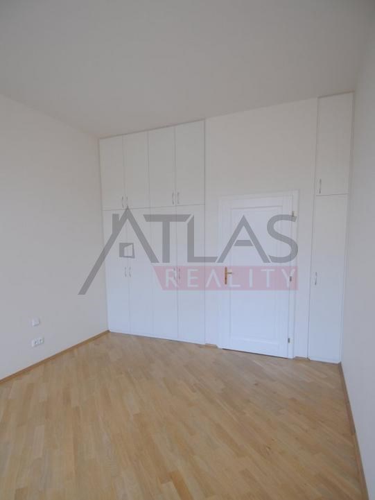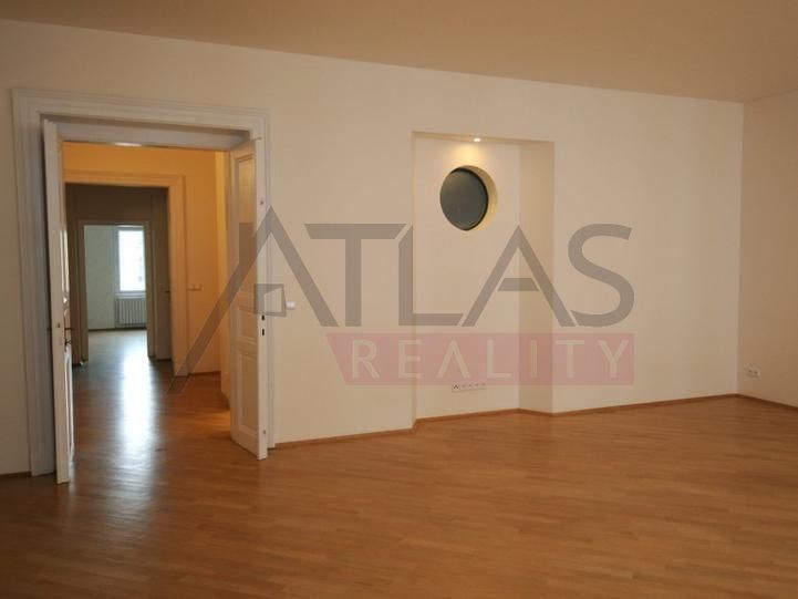 Pronájem nezařízeného bytu 3+1 o rozloze 111 m2 po kompletní rekonstrukci. Byt se nachází ve třetím patře cihlového činžovního domu. Byt nabídne dvě ložnice, obývácí pokoj s jídelnou, plně vybavenou kuchyň, spíž (komoru) a dvě koupleny, jednu s rohovou vanou, WC a bidetem, druhou se sprchovým koutem WC a bidetem. Na podlahách jsou parkety, dále je v bytu alarm, internet, telefon, satelit. Měsíční poplatky na byt jsou 5000 Kč EUR měsíčně (výtah, úklid a osvětlení společných prostor, vodné a stočné) + spotřeba plynu a elektřiny, která bude placena nájemcem přímo distribučním společnostem..