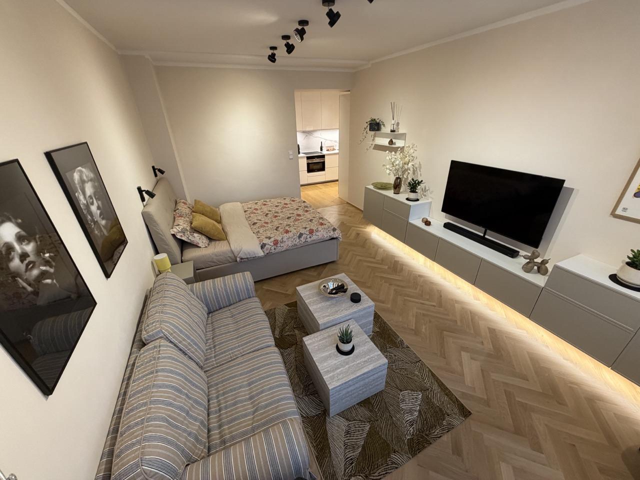 Nabízíme k pronájmu moderní byt 1+kk o velikosti 36 m v atraktivní lokalitě Praha 3 Vinohrady, ulice Šrobárova. Byt je kompletně zrekonstruovaný, s novým vybavením a designovým interiérem, ideální pro jednu osobu nebo pár. Byt je zcela nový ve všech ohledech od podlah, rozvodů a instalací až po kuchyňskou linku a vybavení. Stačí přinést kufry a okamžitě se nastěhovat. Dispozice a vybavení bytu byt 1+kk, 36 m světlý a plně zařízený interiér moderní, promyšlený design přízemí pohodlný vstup bez schodů vhodné pro 1 osobu / maximálně pár bez zvířat Podmínky pronájmu kauce ve výši 2 nájmů (možno uhradit na dvě splátky) provize 1 nájem 1. nájem + poplatky volné ihned Lokalita Praha 3, Vinohrady (Šrobárova ulice) Byt se nachází v jedné z nejžádanějších lokalit Prahy. Vinohrady jsou oblíbené pro svou kombinaci klidu, zeleně a perfektní dostupnosti do centra. V okolí najdete: zelené parky a klidné ulice ideální na procházky výbornou dopravní dostupnost metro a tramvaje (Želivského a okolní spoje) kompletní občanskou vybavenost obchody, kavárny, restaurace, lékárny rychlé spojení do centra i dalších částí Prahy Tento byt představuje ideální kombinaci moderního bydlení, komfortu a prestižní lokality. Prohlídky možné ihned neváhejte mě kontaktovat.