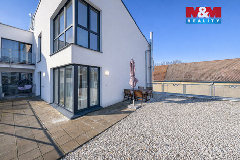 Prodej moderního bytu 3+kk v prestižním projektu Rezidence U Rokytky se třemi dvoupatrovými vila domy z roku 2021, s výjimečnou terasou a garážovým stáním v hodnotě 650.000 Kč již v ceně. Byt o užitné ploše 70 m2 se nachází ve 2. NP nízkoenergetické novostavby (třída B) a nabízí ideální propojení komfortu, soukromí a přírody při rychlé dostupnosti centra. Součástí je balkon 5 m2 bez přímých pohledů sousedů, velkorysá terasa 64 m2 poskytující prostor pro lounge zónu, grilování i rodinné posezení a samostatný sklep. Celková plocha včetně příslušenství činí 142 m2 + garážové stání s možností dokoupení druhého. Orientace na východ, jih a západ zajišťuje dostatek světla po celý den. Kvalitní materiály, výborný stav, byt obýván pouze majiteli. Velká společná zahrada s prostorem pro děti i dospělé. Klidná lokalita u parku Smetanka, v blízkosti Rokytky, cyklostezek a zeleně. Kompletní občanská vybavenost, MHD 2 min., Václavské náměstí 16 min. autem. Možnost převzetí hypotéky s úrokem 2,29%.