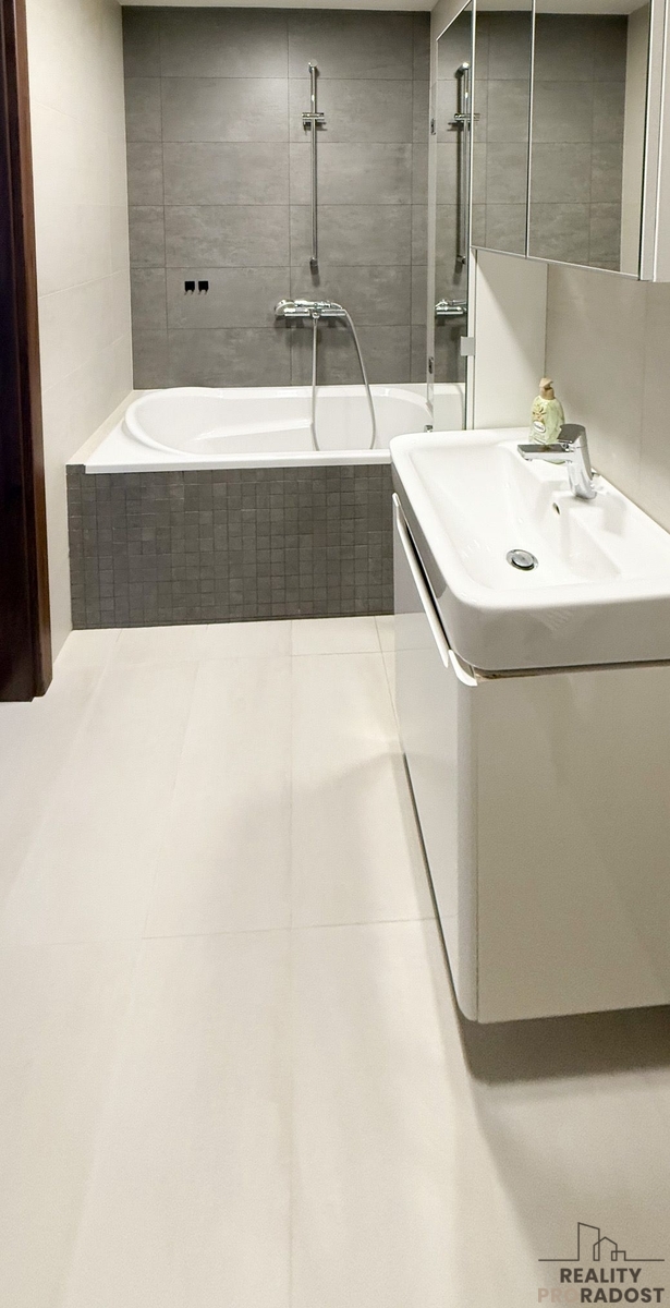 K dlouhodobému pronájmu nabízíme částečně vybavený byt 2+kk (49 m2) s vlastní předzahrádkou (32 m2) situovaný v 1. patře rezidenčního projektu Žalanského na Praze 6 - Řepy. Byt se skládá z prostorné vstupní chodby, neprůchozí ložnice, obývacího pokoje s nadstandardní kuchyňskou linkou a koupelny s toaletou a vanou. Kuchyně je vybavena indukční varnou deskou a multifunkční troubou. Po domluvě s majitelem lze dovybavit dalšími spotřebiči (lednice, pračka, myčka). V bytě je moderní dřevěná podlaha kombinovaná s velkoformátovou dlažbou (v koupelně). K bytu náleží také sklepní kóje (4 m2) Zahrada 20 m2 je přístupná přes terasu 12 m2 z obývacího pokoje a je umístěna nad garážemi. K bytu náleží jedno venkovní uzavřené parkovací stání. V okolí domu je kompletní občanská vybavenost. Nájem: 27.000Kč Poplatky: 3.200Kč ( dle počtu osob) Elektřina dle spotřeby/převodem Kauce: 35.000Kč Provize RK Volný od 1.3.2026 V případě zájmu o prohlídku nás neváhejte kontaktovat.