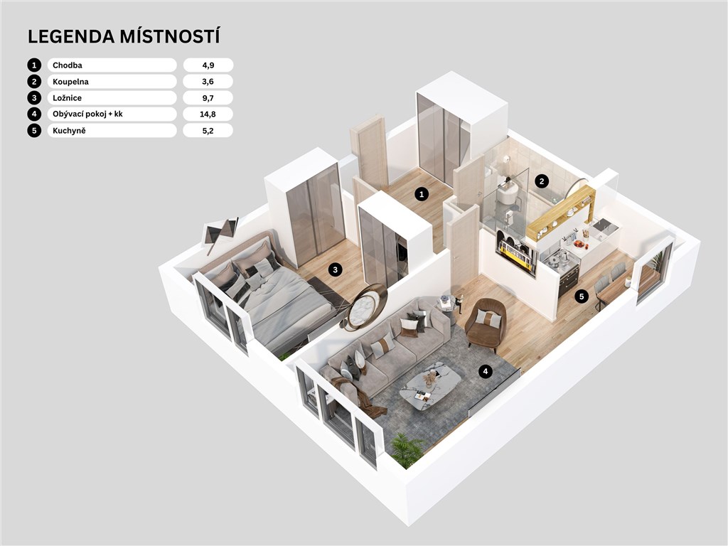 Prostorný a tichý 2+kk o velikosti 49 m2 - ideální pro bydlení i investici