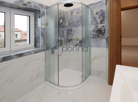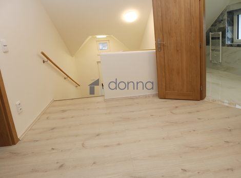 Nabízíme pronájem nově zrekonstruovaného podkrovního bytu 4+kk, o ploše 71m2 + podkroví 23m2, s předzahrádkou 63m2, v 1. patře rodinného domu, ulice V Nových Bohnicích, Praha 8 - Bohnice. Dům je zateplený a disponuje samostatným venkovním vstupem, který zajišťuje maximální soukromí a pocit vlastního domova. Vstupní hala, světlý obývací pokoj s kuchyňským koutem a krásným klenutým stropem, neprůchozí ložnice, další průchozí pokoj + menší pracovna či dětský pokoj, koupelna se sprchovým koutem a přípravou na pračku, samostatné WC a praktický podkrovní úložný prostor o ploše 23m2. Byt je nabízen nezařízený - můžete si jej zařídit přesně podle svého stylu. Moderní kuchyňská linka je vybavena vestavěnými spotřebiči: sklo-keramická varná deska, elektrická trouba, myčka nádobí a digestoř; po dohodě lze doplnit lednici s mrazákem. Bydlení nabízí komfortní a praktické prvky: nové kvalitní ekologické podlahy Meister, elektrické předokenní žaluzie pro větší soukromí a tepelný komfort, internetové připojení k dispozici, možnost užívat část zahrady kolem domu a bezproblémové parkování zdarma přímo u domu. V okolí je mnoho zeleně i kompletní občanská vybavenost. V docházkové vzdálenosti je přírodní památka Bohnické údolí, Statek Vraných, nákupní možnosti nabízí OC Krakov a Lidl, nedaleko jsou také Botanická a Zoologická zahrada či Aquacentrum Šutka. Zastávka Staré Bohnice je 1 minutu pěšky od domu, metro C Kobylisy je dostupné přímým autobusem přibližně za 9 minut. Poplatek za energie a služby bude upřesněn dle počtu osob a způsobu užívání. K nastěhování ihned. Pronajímatel si vyhrazuje právo výběru nájemce.