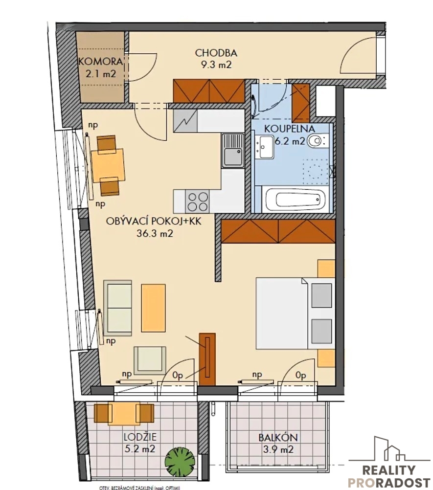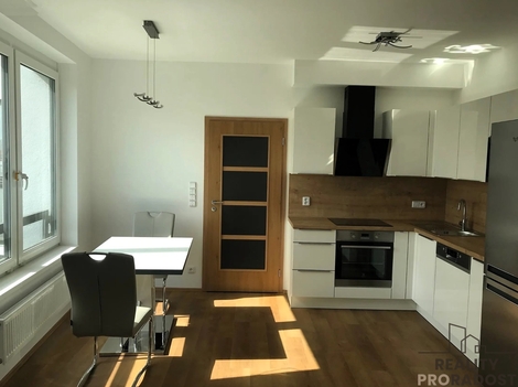 Nabízíme k pronájmu krásný, plně vybavený byt 2 + kk s balkonem, lodžií a komorou v ul. Lovosická Praha 9 - Střížkov, v nově postaveném bytovém komplexu PROSEK PARK. Byt o celkové užitné ploše 56 m2 a s balkonem o velikosti 4 m2 a lodžií 5 m2 se nachází v 6. patře moderní novostavby s výtahem, která byla zkolaudována v roce 2018. V bytě je k dispozici moderní kuchyňská linka vybavená spotřebiči, včetně varné desky, elektrické trouby, mikrovlnné trouby a lednice s mrazákem. Dále je tu jídelní stůl se židlemi. Obývací prostor je vybaven sedací soupravou, konferenčním stolkem a komodou se vstupem na zasklenou lodžii. Ložnice, oddělená zasouvacími dveřmi, je zařízena prostorným dvojlůžkem a šatní skříní přes celou zeď. Koupelna je vybavena vanou, pračkou a toaletu. V předsíni se nachází předsíňová stěna s lavicí a vstup do komory o výměře 2 m2. Podlahy vinyl a dlažba. K bytu je možno pronajmout také vnitřní garážové stání, které je prakticky umístěno poblíž výtahu za cenu 2 tis. Kč. Bezpečný přístup do domu i garáže je zajištěn na čip. V okolí domu je veškerá občanská vybavenost, včetně obchodů a nedaleké polikliniky. Velkou předností této nemovitosti je skvělá dopravní dostupnost; stanice metra C Střížkov se nachází pouhé 3-4 minuty chůze od domu s dojezdem za 15-20 minut do centra. Byt je ideální pro maximálně dvě osoby. Nájem: 22.000,- Kč Poplatky: 3.500,- Kč Elektřina: převádí se na nájemníka Kauce: 1 x nájem Provize RK: 1 x nájem K nastěhování od dubna 2026, prohlídky budou možné od 6.4.2026 dle domluvy s majitelkou. V případě zájmu o prohlídku nás neváhejte kontaktovat.