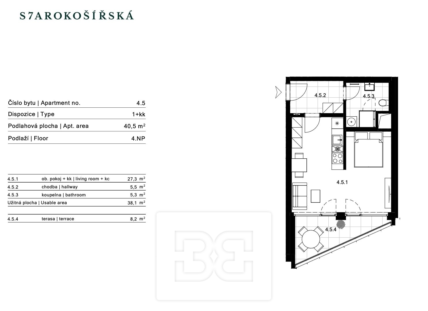 K nastěhování ihned. Nabízíme k pronájmu moderní byt o dispozici 1+kk, který je díky chytrému dispozičnímu řešení možné vnímat jako tzv. 1,5kk. Obytný prostor je prakticky oddělen příčkou, což zajišťuje vyšší míru soukromí a komfortu. Byt se nachází ve 4. patře právě dokončené novostavby v atraktivní lokalitě Prahy 5 - Košíře, v rezidenčním projektu Starokošířská 7. Interiér je proveden ve vysokém standardu. Součástí bytu je moderní kuchyňská linka vybavená spotřebiči (myčkou nádobí, lednicí, digestoří, mikrovlnnou troubou a pečicí troubou). V obytné části i v prostoru ložnice jsou položeny krásné dřevěné podlahy, které podtrhují celkově kvalitní charakter interiéru. Velká okna s designovými závěsy zajišťují dostatek denního světla a příjemnou atmosféru. K bytu náleží také prostorný balkon o výměře 8 m2. V předsíni je vestavěná skříň poskytující dostatek úložného prostoru. Lokalita nabízí veškerou občanskou vybavenost - obchody, restaurace, služby, poštu i lékárnu. V docházkové vzdálenosti se nachází tramvajová i autobusová zastávka. V blízkém okolí je rovněž široká nabídka volnočasových aktivit. Měsíční nájem - 22000 Kč, + zálohy na služby 4300 kč + elektřina (1000 kč), vratná kauce, provize 22000 kč + DPH. Velkou výhodou pro potenciální nájemce je, že byt je v profesionální správě společnosti Bohemian Estates, jenž správu pro majitele tohoto bytu vykonává. Nájemci je k dispozici kontaktní osoba, která obratem řeší veškeré záležitosti s nájmem spojené (pravidelná údržba i havarijní zásahy vlastními techniky, vyúčtování, dodatky, apod.). Nájemci je tak zajištěno bezproblémové užívání bytu s kompletním servisem.