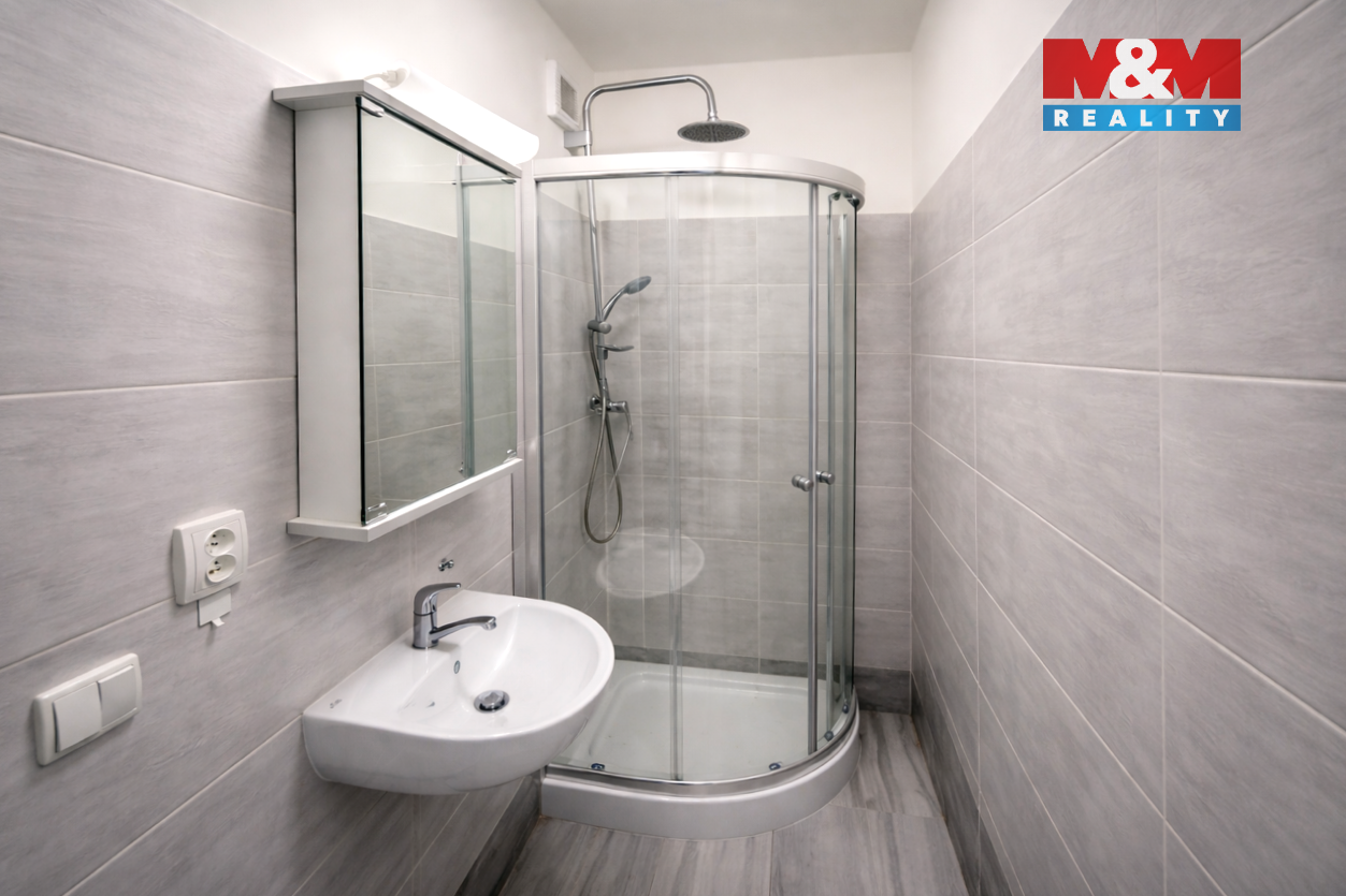 Nabízíme moderně zrekonstruovaný světlý byt 1+kk o velikosti 28,28 m2. Byt orientovaný na východ se nachází v 9. NP domu s výtahem. Díky vyššímu podlaží si užijete příjemný výhled i dostatek denního světla Je částečně vybaven a připraven pro prvního nájemce. Nabízí novou koupelnu se sprchovým koutem, vestavěné skříně v chodbě a moderní kuchyňský kout, jehož součástí je také pračka. Interiér působí čistě, svěže a prakticky - ideální pro jednotlivce, popř. pár, kteří chtějí pohodlné městské bydlení bez kompromisů. Součástí bytu je sklepní koje, v domě je k používání kolárna. Dům zajišťuje bezpečí díky kamerovým systémům, vstup je na čip. V bezprostřední blízkosti se nachází autobusová zastávka, nákupní centrum i široké možnosti sportovního vyžití. Jsou zde velice nízké poplatky za služby - 1.600,- Kč, takže celková částka je 18.600,- Kč / měsíc. Záloha na el. je 600,- Kč / měsíc. Stačí se jen nastěhovat.