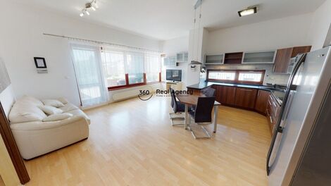 Hledáte byt, který nabízí prostor, soukromí a skutečně velkorysou terasu, kde si vytvoříte vlastní letní obývací zónu? Ve výhradním zastoupení nabízím k pronájmu moderní byt 3+kk o podlahové ploše 86,29 m s terasou 48,54 m (celkem 134,83 m užitné plochy) v cihlovém domě s výtahem. Součástí pronájmu je 1 garážové stání, s možností pronájmu druhého stání za 2 600 Kč/měsíc. Dispozice Byt se nachází ve 3. nadzemním podlaží (poslední patro) a nabízí promyšlené rozložení prostoru: obývací pokoj s kuchyňským koutem (32,88 m) ložnici (13,97 m) druhý pokoj vhodný jako dětský pokoj či pracovna (18,55 m) předsíň (10,68 m) komoru / technickou místnost (3,34 m) koupelnu (5,92 m) samostatné WC (0,95 m) terasu (48,54 m) Velkorysá terasa poskytuje dostatek prostoru pro posezení, grilování i relaxaci s výhledem do okolí. Vybavení (částečné) Byt se nabízí částečně vybavený: plně instalovaná kuchyňská linka včetně jídelního stolu a židlí (sklokeramická deska, trouba, myčka, mikrovlnná trouba, americká lednice s výrobníkem ledu a dávkovačem vody) koupelna s vanou i sprchovým koutem samostatná toaleta pračka a sušička vestavěné skříně v ložnici, dětském pokoji i hale manželská postel vybavení dětského pokoje (bez volně stojícího nábytku v obývací části) Plovoucí podlahy a dlažba. Internet k dispozici. Další benefity Možnost využívání oplocené zahrady kolem domu (dětská prolézačka, gril, posezení) a kočárkárny. V bezprostředním okolí veškerá občanská vybavenost obchodní centrum Europark, škola, školka, restaurace, kavárny, sportoviště i park. Autobusová zastávka 2 minuty chůze (směr Želivského, Depo Hostivař, Háje). ________________________________________ Byt je ideální pro rodinu, která hledá klidné bydlení s nadstandardní venkovní plochou a komfortem parkování. Pro více informací či sjednání prohlídky mě neváhejte kontaktovat. <a href="https://www.eurobydleni.cz/komercni-nemovitosti/skladovaci-prostory/hodonin/obec-hodonin/pronajem/"><strong>Pronájem skladu Hodonín</strong></a>