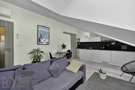 Nabízíme k prodeji podkrovní byt 2+kk o podlahové ploše 43,4 m v atraktivní části Prahy 5 Smíchov, ulice Strakonická. Součástí je také sklepní kóje o velikosti 6 m, která poskytuje praktický úložný prostor. Byt se nachází v 7. nadzemním podlaží, tedy v posledním patře domu s výtahem, což přináší větší klid, soukromí a příjemnou atmosféru podkrovního bydlení. Nemovitost prošla v roce 2018 kompletní rekonstrukcí a je ve velmi dobrém technickém stavu. Dispozice nabízí obývací pokoj s kuchyňským koutem, samostatnou ložnici, koupelnu a vstupní chodbu. Komfort v letních měsících zajišťuje klimatizace. Velkou výhodou této nabídky je aktuální dlouhodobý nájemce se smlouvou do 31. 8. 2026, který má zájem v nájmu pokračovat. Byt tak může sloužit jako okamžitá investice s již zajištěným výnosem a bez nutnosti hledat nového nájemníka. Zároveň do budoucna nabízí možnost vlastního bydlení v širším centru Prahy. Lokalita patří dlouhodobě mezi vyhledávané díky výborné dopravní dostupnosti. Tramvajová zastávka Plzeňka se nachází necelých 200 metrů od domu. Přibližně 500 metrů je Smíchovské nádraží, kde je k dispozici metro linky B, tramvajové i autobusové spojení a vlak. V docházkové vzdálenosti je kompletní občanská vybavenost. Smíchov nabízí kombinaci městského života, služeb i rychlé dostupnosti do centra. Tento byt představuje zajímavou příležitost jak pro investory, tak pro jednotlivce či pár, kteří hledají moderní bydlení s výbornou dostupností. Pro více informací nebo sjednání prohlídky neváhejte kontaktovat naši rodinnou realitní kancelář. <a href="https://www.eurobydleni.cz/pozemky/zahrada/karvina/obec-karvina/prodej/"><strong>Prodej zahrady Karviná</strong></a>