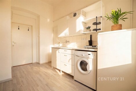 Exkluzivně nabízíme ke koupi byt o dispozici 1+1 o celkové výměře 27 m2, polohou v klidné části městské části Libeň. Byt se nachází ve druhém patře třípatrového domu a sestává z kuchyně, ze které dále vstupuje do obytného pokoje. Kuchyň je vybavena jednoduchou kuchyňskou linkou s volně stojící lednicí, pračkou, elektrickým dvouvařičem a dřezem. Z kuchyně je přístupný i sprchový kout a samostatné WC. Okna bytu jsou orientována do vnitrobloku. K bytu náleží komora (1 m2) na stejném patře. Okna plastová, podlahová krytina vinyl, výška stropu 3,2 m. Vytápění bytu je elektrickými přímotopy, ohřev teplé vody je elektrickým bojlerem. Dům je v dobrém, udržovaném stavu. Byt nabízí skromné bydlení s dobrou dopravní dostupností jak autem, tak MHD. Lokalita nabízí kompletní sociální služby: školka, škola, lékař, úřad. Provozní náklady: záloha na služby (vodné, stočné atd.) - 832 Kč, fond oprav - 271 Kč. Pro více informací nebo sjednání prohlídky volejte makléři.