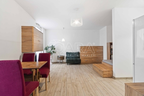 Pokud hledáte moderní startovací bydlení nebo chytrou investici v jedné z nejprogresivnějších částí Prahy, tento byt by vám neměl uniknout. Nachází se v novostavbě postavené v roce 2016 z úspěšného projektu Na Vackově na Žižkově. Byt o dispozici 1+kk má vnitřní plochu 38,7 m2 a nachází se v 5. nadzemním podlaží. Největším tahákem je bezesporu velkorysá terasa o výměře 12,1 m2, která díky vyššímu patru nabízí skvělý výhled do okolí a dostatek prostoru pro venkovní posezení nebo relaxaci. Kuchyňská linka disponuje všemi moderními spotřebiči (indukce, trouba, myčka, lednice), v koupelně najdete vanu i pračku. Byt se prodává bez nábytku, který vidíte na fotografiích. Velkou výhodou jsou velmi nízké měsíční náklady, které činí pouze 3 337 Kč včetně fondu oprav. Dům je navíc ve velmi úsporné energetické třídě B. Lokalita Vackova je dnes fenoménem. Bydlíte v moderní, čisté čtvrti, která sousedí s rozlehlým parkem Židovské pece- ideální místo na běhání nebo odpolední relax. Žižkov navíc prochází velkou proměnou a díky blízkému areálu Nákladového nádraží se zde tvoří nové kulturní a společenské centrum Prahy. Dostupnost do centra je perfektní: Autobusová zastávka Vackov je jen 3 minuty od domu (přímý spoj na metro Florenc). Tramvajová zastávka Strážní je vzdálená 8 minut chůze (linky 9, 1, 11 vás dovezou na Václavské náměstí za čtvrthodinu). V okolí najdete kompletní občanskou vybavenost - od vyhlášených žižkovských bister a restaurací až po supermarkety a sportoviště. Pokud vás tento moderní byt s výhledem zaujal, kontaktujte prosím Honzu Šebka pro více informací nebo domluvení prohlídky.