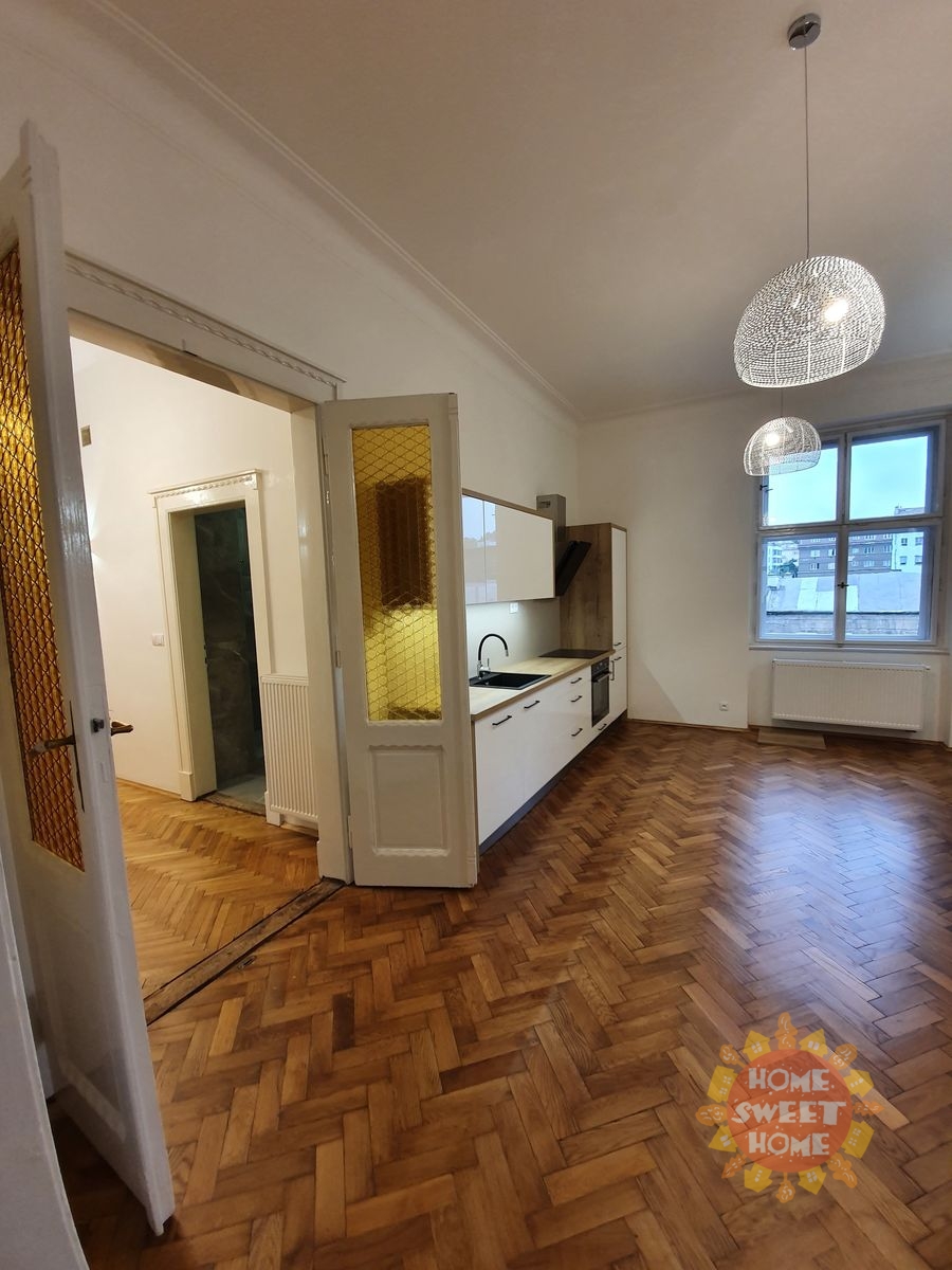 Nabízíme k pronájmu moderní, kompletně zrekonstruovaný byt 3+kk v hezké lokalitě na Prahe 5- Smíchov, ulice Ostrovského. Byt se nachází ve 2. patře cihlové budovy s výtahem. V bytě se nachází vstupní hala, obývací pokoj s kuchyňským koutem, 2 ložnice, šatna a koupelna sprchovým koutem a toaletou. Kuchyň je plně vybavena spotřebiči (lednice, myčka, mikrovlnná trouba, sklokeramická varná deska, digestoř). Na podlahách jsou parkety a dlažba. Topení a ohřev vody zajišťuje vlastní plynový kotel. V koupelně je příprava pro připojení pračky. Jedná se o vynikající lokalitu nedaleko centra. K okolí naleznete veškerou občanskou vybavenost. Kulturní vyžití zajištěno. Můžete navštívit například multiplex Village cinemas nebo nedaleké Švandovo divadlo. Nedaleko také Petřín a zahrada Kinských. Nákupní příležitosti na každém kroku. OC Nový Smíchov jen pár minut chůze od domu. Perfektní dopravní dostupnost do centra. Zastávka tramvaje či stanice metra B "Anděl" 3 minuty od domu. Vratná kauce pro majitele: 60.000,-Kč. K dispozici od 1.dubna.