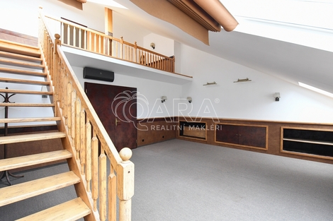 Exkluzivní nabídka pronájmu výjimečného mezonetového bytu o dispozici 3+1 s balkonem a garážovým stáním, ul. Spálená, Praha 1. Byt je umístěn ve 4. a 5. NP tradičního činžovního domu s výtahem. Tento prostor je možné pronajmout na bydlení nebo jako kancelář. Byt o celkové výměře 140 m2 (vnitřní plocha - 127 m2, balkon - 13 m2) je zajímavě dispozičně řešen a tvoří jej: velkorysá vstupní hala, obývací pokoj se vstupem do patra přes galerii, ložnice, koupelna s vanou a WC, pokoj (dříve kancelář), kuchyně, technická místnost a druhá koupelna s vanou a WC. Z pokoje a kuchyně je možný vstup na balkon, který je orientován na západ do klidného dvora. Stejnou orientaci okna pak má ložnice v patře. Obývací pokoj má velkorysá střešní okna orientovaná na opačnou stranu do ulice Spálená s výhledem na střechy okolních domů. Byt je vybaven klimatizací. Kuchyně je plně vybavená, v ložnici je velká vestavěná skříň. Po obvodu obývacího pokoje je instalován skříňový systém, který poskytuje dostatek úložného prostoru a je zde také zabudovaná výsuvná televize. Podlaha je parketová, ve vstupní hale a v obývacím pokoji zakrytá kobercem, v koupelnách je položena dlažba. Vytápění zajišťuje vlastní plynový kotel v bytě, který také ohřívá vodu. Do bytu je velmi snadný přístup výtahem přímo až ke vstupním dveřím. K bytu náleží garážové stání ve dvoře domu. Skvělá dopravní obslužnost: stanice metra B - Národní třída a stanice TRAM (č. 22 a další) jsou téměř před domem. V místě naleznete vše co lze hledat v centru velkoměsta - obrovské množství služeb, restaurací, poliklinika v protějším domě i široké možnosti sportovního a volnočasového vyžití. Společně s nájemným se hradí měsíční poplatky ve výši 1.500 Kč + elektřina a plyn se převádí na nájemníka. Kauce ve výši jednoho nájmu, provize ve výši jednoho nájmu. Volné ihned. Pokud máte zájem o prohlídku, vyplňte prosím formulář níže, co nejdříve se vám ozveme.