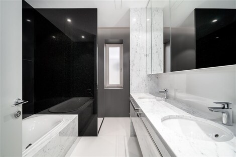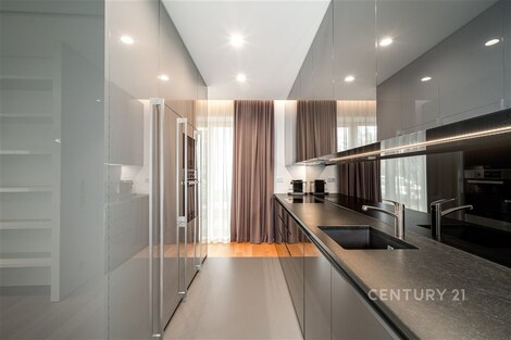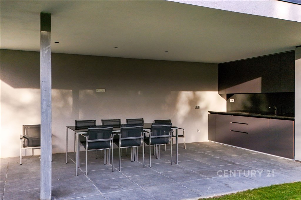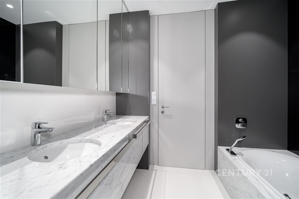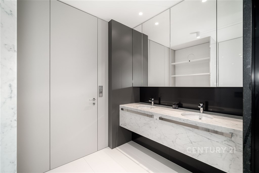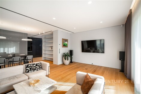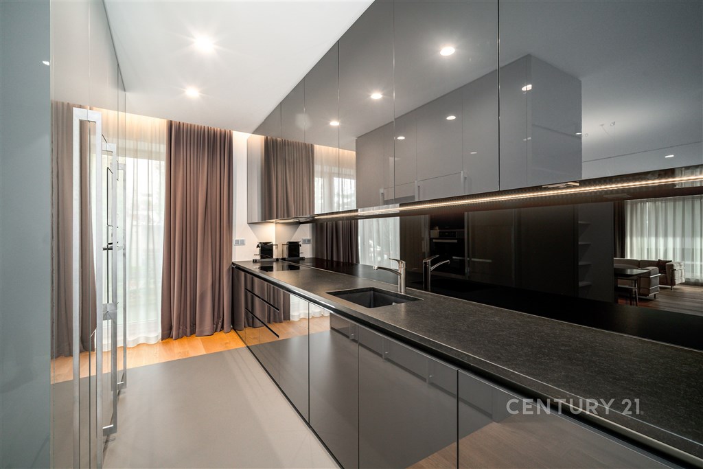 Nabízíme k pronájmu výjimečný byt o dispozici 3+kk s terasou, který se nachází ve 2. nadzemním podlaží zrekonstruované vily v jedné z nejžádanějších rezidenčních lokalit Prahy - Podolí. Byt nabízí celkovou plochu 137m2 a je doplněn o prostornou terasu o velikosti 63m2, která poskytuje ideální prostor pro venkovní posezení a relaxaci. Interiér bytu byl navržen renomovaným českým architektem Radanem Hubičkou, který je známý svou schopností maximálně využít prostor a elegantně integrovat úložné prvky tak, aby zůstaly vizuálně čisté a téměř neviditelné. Soukromí, komfort, funkčnost a nadčasový design jsou hlavními atributy tohoto bydlení. Vstup do bytu tvoří velkorysé zádveří s integrovanými vestavěnými úložnými systémy, které jsou citlivě zapracované do stěn a vytvářejí minimalistický a nerušivý prostor. Na zádveří navazuje hlavní obytná část, která propojuje obývací pokoj, jídelnu a kuchyni. Prostor je díky velkoformátovým posuvným oknům krásně prosvětlený a nabízí přímý vstup na terasu. Kuchyň je navržena jako samostatně vnímaný celek - je částečně oddělena subtilní obcházející stěnou, která zachovává otevřenost prostoru, ale zároveň eliminuje přímý pohled na pracovní část kuchyně z obývací zóny. Samozřejmostí jsou prémiové spotřebiče značky Miele. Hlavní ložnice nabízí maximální komfort a soukromí - disponuje vlastní šatnou, ensuite koupelnou a přímým vstupem na terasu, který přirozeně propojuje interiér s venkovním prostorem. Druhá ložnice je situována v klidové části bytu a má k dispozici druhou koupelnu, která je přístupná ze zádveří. Součástí bytu je také samostatná místnost pro praní a úklid, vybavená pračkou a sušičkou, která zároveň poskytuje praktický úložný prostor. K bytu náleží 1 garážové stání. Rezidenti mohou využívat také společnou zahradu o výměře 1 099m2, která nabízí prostor pro relaxaci i společenská setkání, včetně venkovního posezení, grilovací zóny a venkovní kuchyně. Podolí patří mezi nejvyhledávanější vilové čtvrti Prahy, nabízí klidné bydlení v zeleni a zároveň výbornou dostupnost do centra města. Tento byt je ideální pro klienty hledající reprezentativní bydlení s důrazem na architekturu, detail a kvalitní design.