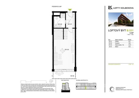 Nabízíme k prodeji nadstandardně velký byt v kategorii 1+kk o celkové výměře 45 m2. K bytu náleží balkon o velikosti 5,99 m2. Byt je vybaven moderními technologiemi, zvyšující standard vašeho bydlení, jako je rekuperace, klimatizační jednotka, podlahové topení a předokenní žaluzie. Podlaha dřevěná v dekoru běleného dubu podtrhává industriální ráz celého komplexu s přiznanými betonovými prvky původní konstrukce. Byt je vhodný nejen jako startovací bydlení, nebo ideální počin pro investora, ale také jako forma atraktivního bydlení pro studenty nebo začínající umělce. Tento developerský projekt získal ocenění jako uznání za nejlepší stavbu využívající stávající objekt v bývalé průmyslové lokalitě. Jedná se o objekt, kde díky revitalizaci a rekonstrukci bývalé továrny ČKD, se proměnil v moderní, designové bydlení. Developer do 3. patra v bytech zachoval původní prvky z továrny, jako jsou například trámy a krakorce. Od 4. patra se jedná o novostavbu. V projektu můžeme najít byty od 1+kk až po 6+kk. Skvělá dopravní dostupnost, kde se před domem nachází zastávka tramvaje a metro Kolbenova 300 m od objektu. Přímo naproti je komplex Pragovka, nabízející jak kulturní, sportovní tak kulinářské vyžití. Skoro za rohem se nacházejí obchodní centra jako Fénix a Galerie Harfa. Pro fanoušky sportovních zápasů a velkých koncertů ideální bydlení v blízkosti O2 arény a zároveň blízkosti přírody jako Klíčovské sady. Byt je k dispozici ihned, pro více informací o objektu a jiných dispozic bytů/ateliérů přímo od developera mě prosím kontaktujte.