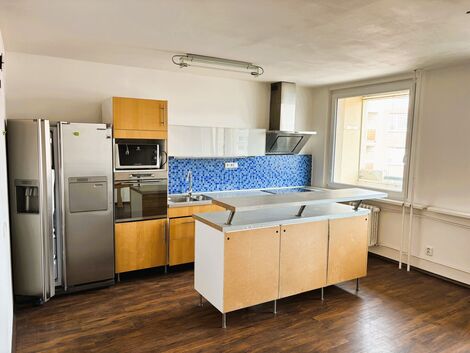 Pronájem velmi pěkného 3+kk 86 m2 se dvěma lodžiemi v 6.patře udržovaného panelového domu v žádané lokalitě sídliště Barrandov. Byt nabízí velký obytný prostor s kuchyňským koutem a ostrůvkem a vstupem na jednu z lodžií s výhledem do klidného vnitrobloku. Kuchyně je vybavena lednicí, myčkou, elektrickou troubou, mikrovlnkou a indukcí. Dva prostorné pokoje každý o velikosti 17 m2 jsou chráněné druhou lodžií, ale ulice ve které se byt nachází je slepá a velmi klidná. Obě lodžie jsou zasklené a opatřené sítěmi proti holubům. V koupelně vybavené pračkou a sušičkou naleznete velký sprchový kout a toaletu. Velkou výhodou bytu je vstup z prostorné předsíně s vestavnou skříní do 8 m2 velké úložné komory. Majitelé jsou vstřícní k domácím mazlíčkům - pro kočky je vytvořený průlez na jednu z lodžií. Ve vnitrobloku naleznete obchůdky a restaurace, na stanici tramvaje je to cca 2 minuty. Sídliště Barrandov poskytuje kompletní občanské vybavení včetně MŠ, ZŠ, mnoha obchodů a skvělou dostupnost do centra města. Parkování na modrých zónách. Poplatky za služby jsou ve výši 6.250,- Kč. Elektřina se převádí na nájemníka. Kauce ve výši 40.000,- Kč. Odměna RK je ve výši nájemného + DPH.