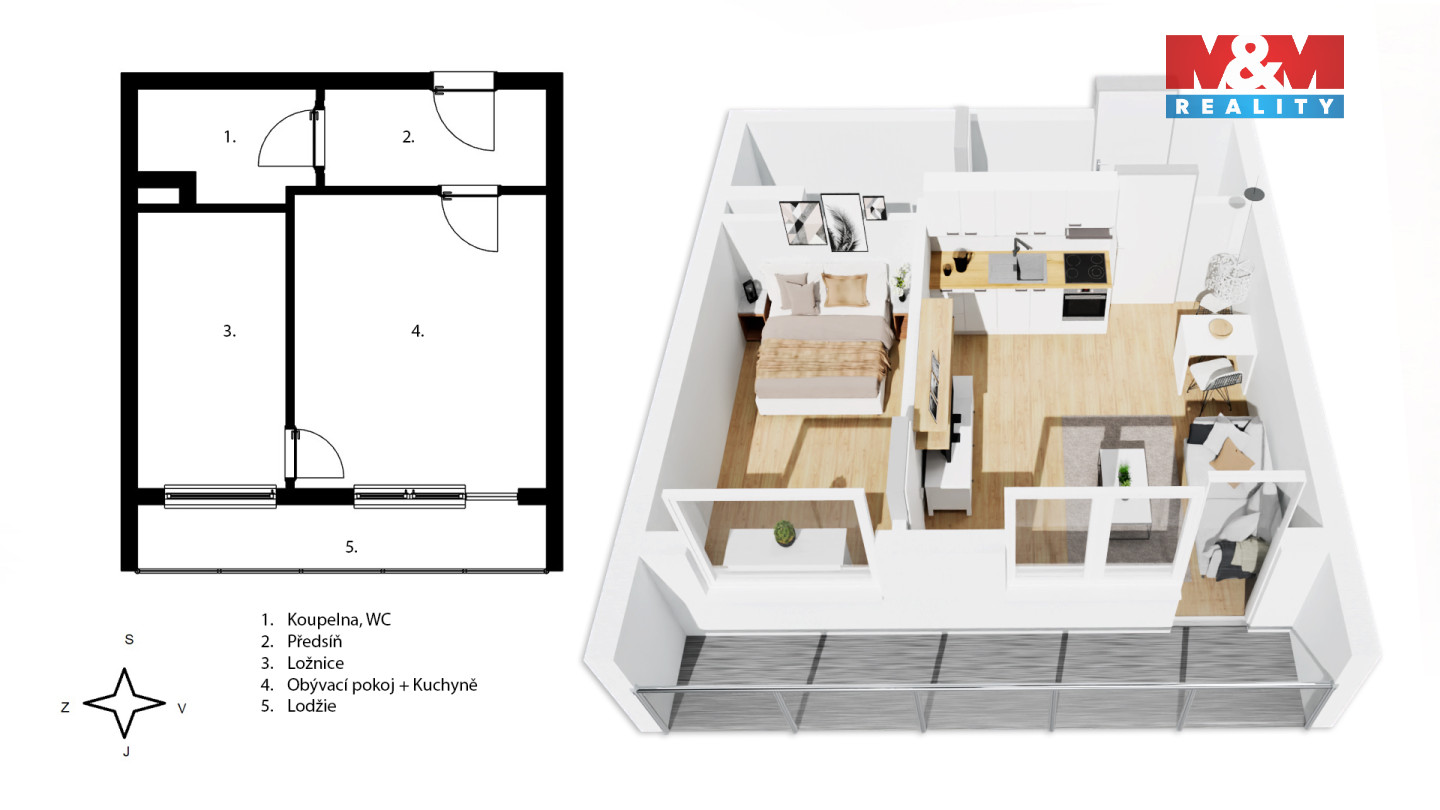 Nabízíme byt 2+kk o podlahové ploše 34,5 m2, který prošel kompletní a pečlivě provedenou rekonstrukcí s odborným dozorem. Dispozice je řešena velmi prakticky: obývací pokoj s kuchyňským koutem, samostatná ložnice, koupelna s toaletou a předsíň. Byt působí vzdušně, funkčně a dává smysl pro každodenní bydlení. Rekonstrukce zahrnovala nové rozvody elektřiny, vody i odpadu, nové protipožární stěny, kvalitní vinylové podlahy, novou kuchyňskou linku se všemi spotřebiči a moderní koupelnu s walk-in sprchou a toaletou. V bytě je již dopředu počítáno s vestavěnými skříněmi na míru, takže úložné prostory lze vyřešit elegantně a efektivně. Velkým benefitem je zasklená lodžie o ploše 6,6 m2, orientovaná na jih, s příjemným výhledem do parku pod okny. K bytu náleží také komora na patře, která poskytne další praktický úložný prostor. Potěší i nízké měsíční náklady na bydlení - cca 3.250 Kč. Do budoucna pak hodnotu bytu výrazně podpoří plánovaná stanice metra D - Nové Dvory.