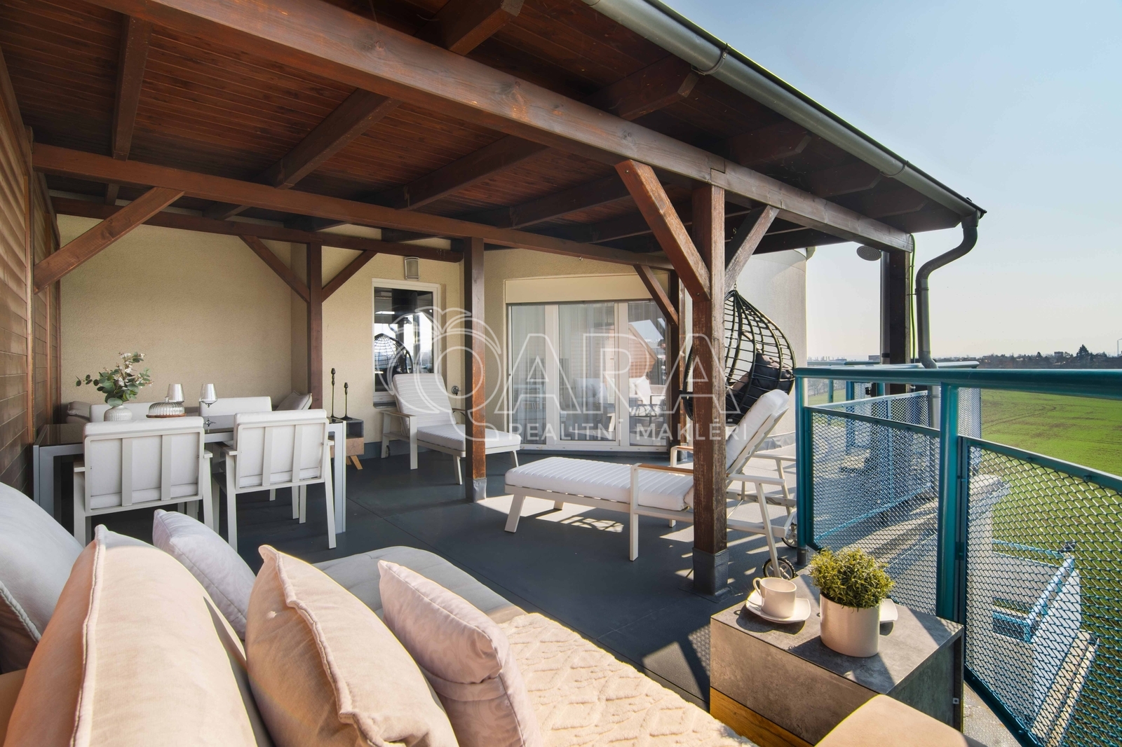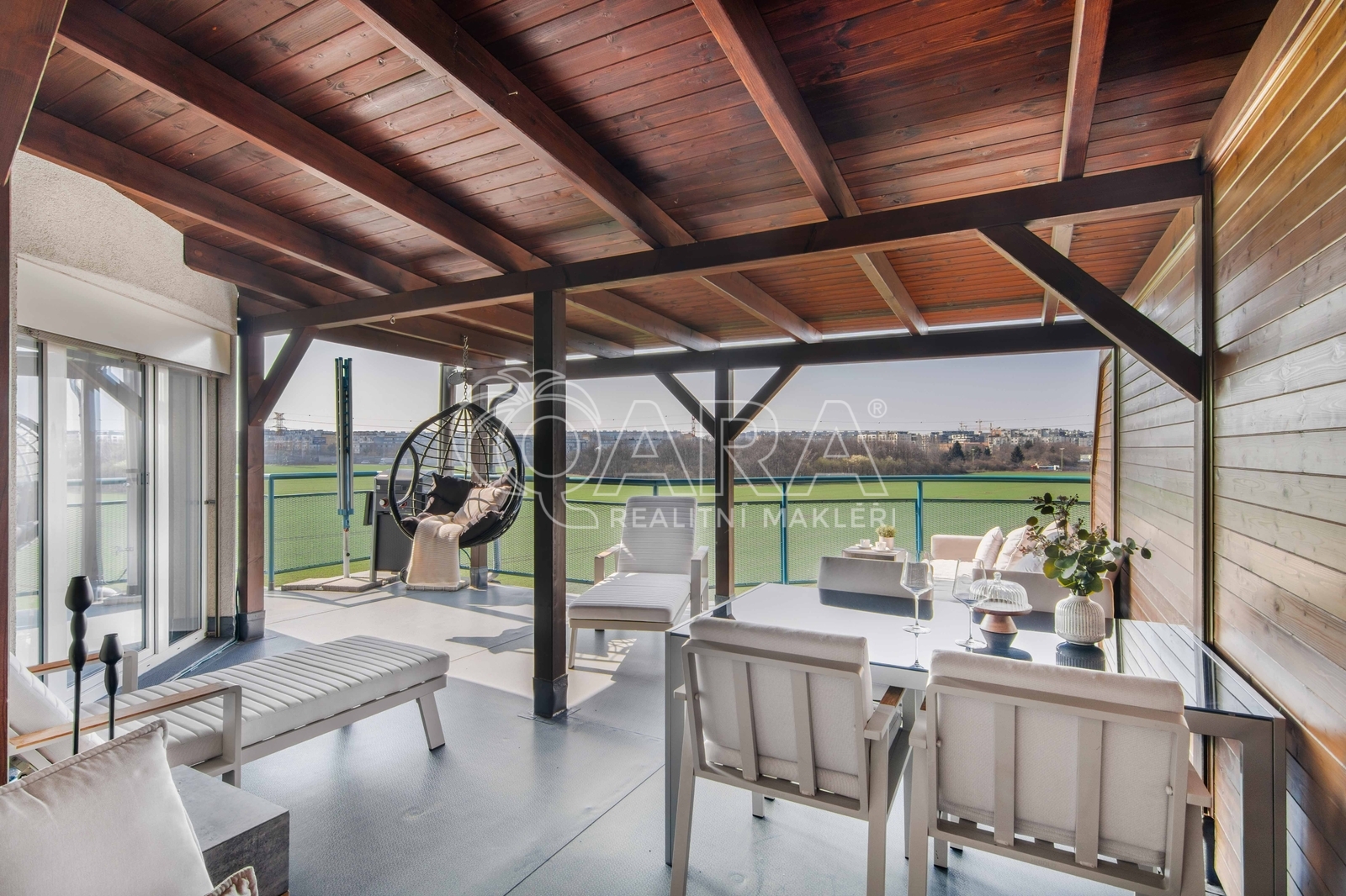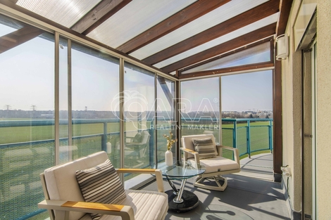 Byt 70 m2 + terasa 49 m2 ( včetně zimní zahrady) + velké parkovací stání + sklep. Na tenhle byt se ani nekoukejte, pokud hledáte klasiku. Tady se totiž neprodává „normální“ byt. Tady kupujete venkovní obývák. Terasa o velikosti 49 m2 obepíná celý obývací prostor, takže byt přirozeně pokračuje ven. Navíc je její součástí zimní zahrada, která je přístupná jak z terasy, tak přímo z obývacího pokoje. Ráno východ, přes den jih, večer západ. Světlo se tu během dne mění a s ním i atmosféra. Dispozice 2+kk (70 m2) působí velmi vzdušně a otevřeně. Obývací část má jemně zaoblený roh, který prostor příjemně změkčuje. K bytu, který kromě ložnice nabízí také koupelnu s vanou i sprchovým koutem, vnitřní komoru a velkorysý obytný prostor, patří navíc velké vnitřní parkovací stání a sklep umístěný přímo u něj. Velká výhoda? Nemusíte řešit vůbec nic. Vše, co vidíte na fotografiích, v bytě zůstává. Včetně venkovního nábytku, pračky, sušičky, klimatizace kávovaru i grilu. Stačí si vzít osobní věci a bydlet. Byt se nachází v 6. nadzemním podlaží ze 7, s výhledem do otevřeného prostoru a dostatkem soukromí. Měsíční poplatky 5 800 Kč + el. energie ( tou se pouze vaří a svítí). Autobusová zastávka Tupolevova je jen pár kroků od domu a na metro C Letňany jste za pár minut. OC Letňany máte cca 300 metrů - Tesco, Cinema City, obchody, služby… prostě vše na jednom místě. Jen 200 metrů od domu je aquapark a zimní stadion, a když potřebujete větší nákup, Globus je 1,5 km odsud. Škola i školka do 5 minut chůze. A když chcete vypnout, stačí se projít kousek dál, lesopark Letňany nabízí prostor na sport, procházky i klid. Tenhle byt stojí za vidění. Ráda vám ho ukážu osobně.