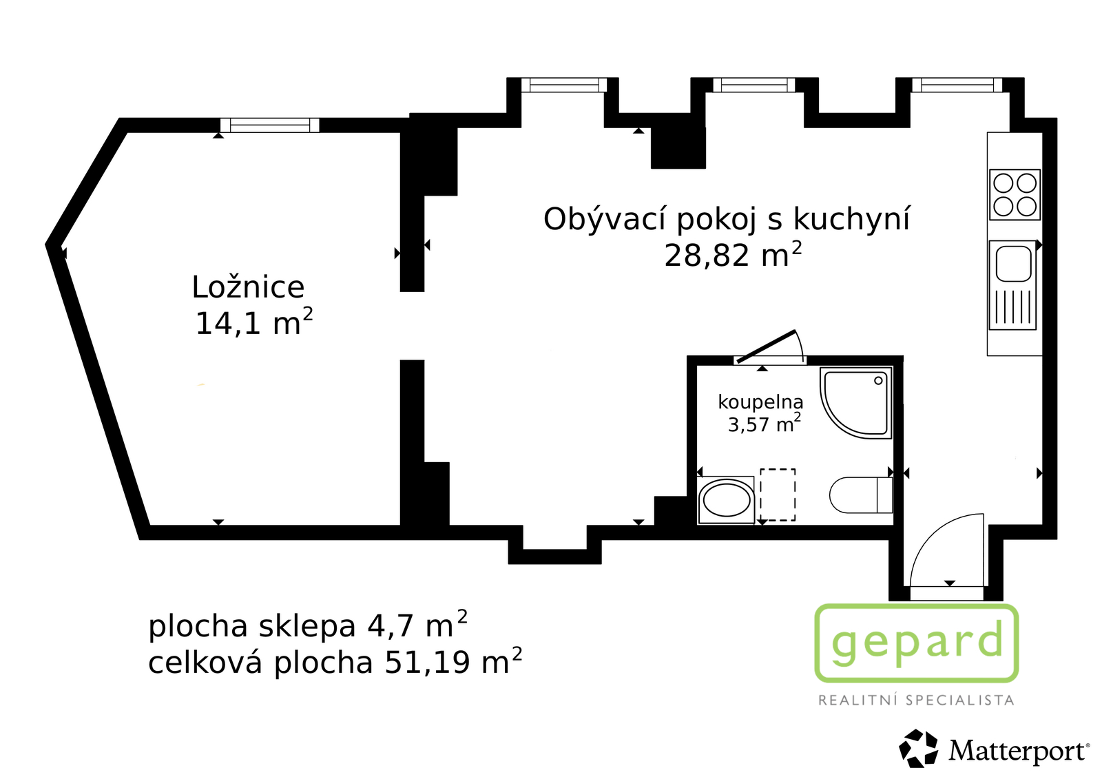 Michal Hribik & Gepard reality nabízí ke koupi byt o dispozici 2+kk o celkové ploše 51 m2, který se nachází v suterénu cihlového domu v atraktivní lokalitě Prahy 5. Byt je situován v pavlačovém domě s vnitroblokem, který nabízí příjemné a klidné prostředí v rámci městské zástavby. Byt disponuje prakticky řešenou dispozicí, která efektivně využívá každý metr prostoru. Najdete zde obývací pokoj s kuchyňským koutem, samostatnou ložnici a koupelnu s toaletou. Interiér je řešen v moderním a čistém stylu s důrazem na funkčnost. Kuchyňská linka je vybavena spotřebiči a nabízí dostatek pracovního i úložného prostoru. V bytě jsou také praktická úložná řešení, která zvyšují komfort bydlení. Podlahová plocha bytu je 47 m2. K bytu náleží sklep o výměře 4,7 m2. Dům prošel rekonstrukcí, při které byly modernizovány rozvody vody, odpady i elektroinstalace, což výrazně přispívá k bezproblémovému užívání nemovitosti. Vytápění bytu je řešeno pomocí elektrických přímotopů, ohřev vody zajišťuje elektrický bojler. Díky své poloze nabízí byt výbornou dostupnost do centra města a kompletní občanskou vybavenost v okolí. Zároveň vnitroblok domu poskytuje klidné zázemí mimo ruch hlavních ulic. Tato nemovitost je vhodná jak pro vlastní bydlení, tak i jako investiční příležitost k pronájmu. Cena bytu činí 7 225 000 Kč. Součástí inzerce je i virtuální prohlídka, která Vám poskytne detailní představu o dispozici bytu i jeho skutečném stavu. Pokud Vás nabídka zaujala, rád Vám pomohu nejen s koupí, ale i se zajištěním financování. Jsem schopný Vám zařídit hypotéku na míru Vašim potřebám a možnostem. Majitel si vyhrazuje právo prodat nemovitost zájemci dle vlastních kritérií. Budu se těšit na osobní prohlídce. Michal Hribik & Gepard reality