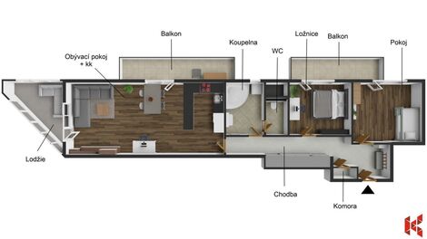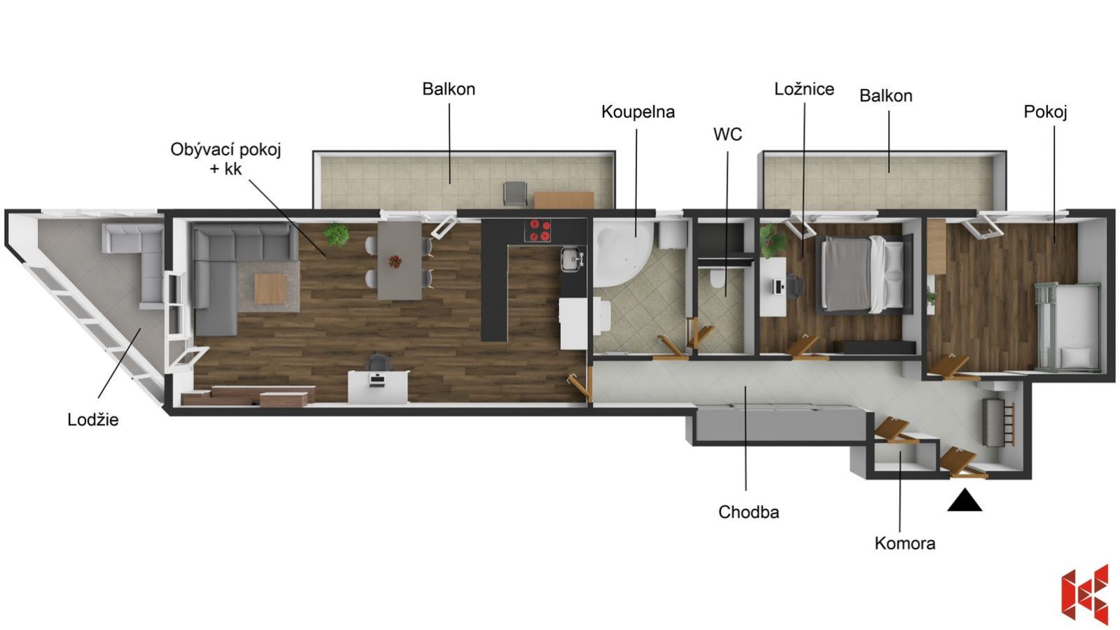 Dokončený, nadstandardně prostorný byt 3+KK o ploše 119,2 m2 s terasou 37 m2 v komorním projektu tří bytových domů v Rezidenci Klíčov, v srdci…