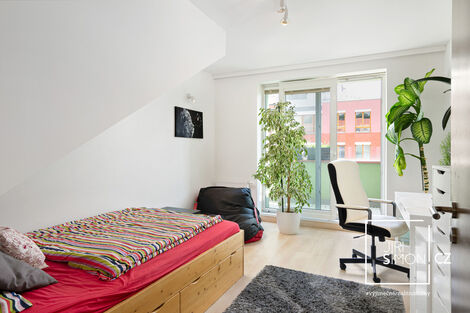 Nabízíme vám k prodeji byt v osobním vlastnictví s dispozicí 4+kk + obytné podkroví, třemi terasami, který je umístěn v 4. a 5. patře cihlového činžovního domu, který leží jen 200 metrů od metra Vysočanská a 60 metrů od tramvaje Vysočanská na adrese Pod Pekárnami 162/9, Praha 9 - Vysočany. Byt má rozlohu s dispozicí 4+kk 110 m2 + obytné podkroví 20 m2 + terasa 1 s výměrou 26 m2, terasa 2 s výměrou 15 m2 a terasa 3 s výměrou 3,5 m2. Dále k bytu patří sklep. Byt obsahuje ve spodním podlaží vstupní halu s úložným prostorem, obývací prostor s kuchyňským a jídelním koutem, dvě ložnice, malou terasu, šatnu a velkou koupelnus se sprchovým koutem, wc a oknem do zahrady. Dále se zde nachází komora s přípojkami pro pračku/sušičku a jednotkou centrálního vysavače. V horním podlaží je velký obytný prostor, dvě velké terasy a další koupelna s wc a sprchovým koutem. Obytné podkroví je možné využít jako hernu pro děti, příležitostné spaní, pracovnu, úložné prostory apod. Byt je velmi moderní a nabízí mnoho způsobů využití a případných úprav dispozic, dle potřeb nového majitele. Je zde provedena příprava pro klimatizaci (rozvody ve stěnách) a stačí pouze osadit venkovní a vnitřní jednotky. Z bytu jsou hezké výhledy do zeleně a otevřeného prostoru. V domě je kolárna/kočárkárna a výtah, který má privátní stanici pouze pro uživatele bytů ve 4. patře. Celkově je dům ve špičkovém stavu po kompletní a moderní rekonstrukci. Byt je aktuálně prázný, vyklizený a připravený k okamžitému nastěhování. V okolí se nachází park Podviní, in-line dráha podél Rokytky a cyklotrasu, které vedou do Troji a dál. Rovněž je zde velmi dobrá dopravní obslužnost (dopravní uzel pro tramvaje, busy, vlak Vysočany nebo Libeň a metro Vysočanská, vše v pěší vzdálenosti) a také pěší dostupnost do O2 arény a nákupního centra Fénix nebo Harfa. Byt je v osobním vlastnictví a jeho nákup je možné financovat hypotéčním úvěrem.