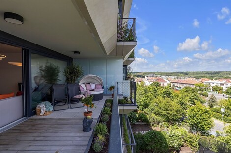 Prodej bytu o dispozici 4+kk s terasami o výměře, dvou garáží a přístupem do soukromé zahrady v prestižním projektu SAKURA. Nabízíme k prodeji výjimečný byt o momentální dispozici 3+kk (s možností jednoduchého navrácení na původní 4+kk), který se nachází ve 3. nadzemním podlaží unikátního rezidenčního projektu SAKURA - jednoho z nejzelenějších a nejkrásnějších míst pro život v Praze. Celkový interiér bytu je navržen s důrazem na vzdušnost, světlo a propojení s okolní zelení. Ze všech obytných místností máte přímý vstup na dvě prostorné terasy, které vás doslova obklopí svěží zelení a květinami. Projekt SAKURA je známý svým ikonickým vertikálním parkem, který je nejen estetickým zážitkem, ale zároveň vytváří přirozenou oázu klidu uprostřed města. Byt nabízí: Prostorný obývací pokoj propojený s jídelnou a plně vybavenou moderní kuchyní 2 koupelny (jedna s vanou, druhá se sprchovým koutem) a 2 toalety Technickou místnost s prostorem pro pračku a sušičku Velkou vstupní chodbu s dostatkem úložného prostoru Dvě soukromé terasy přístupné ze všech pokojů K bytu náleží exkluzivní samostatná dvougaráž, která poskytuje maximální pohodlí a bezpečí. SAKURA - architektura, která roste s přírodou Projekt SAKURA je oceňovaný rezidenční areál s unikátní architekturou, kterou navrhli renomovaní architekti z ateliéru Jestico + Whiles. Fasády domů jsou pokryté bujnou zelení a květinami v několika patrech, což vytváří naprosto výjimečný pocit života v souladu s přírodou. Rezidenti mají přístup do uzavřené soukromé zahrady, která je ideálním místem pro relaxaci, grilování s přáteli či rodinné oslavy. Najdete zde dětské hřiště, přírodní zákoutí k odpočinku i dostatek prostoru pro společenské aktivity - to vše v naprostém soukromí a bezpečí. Hlavní přednosti nemovitosti: Původní dispozice 4+kk - snadno navrátitelná 2 terasy propojující interiér s okolní zelení Dvě koupelny, dvě toalety, technická místnost Samostatná dvougaráž Přístup do soukromé obytné zahrady s dětským hřištěm Unikátní projekt plný zeleně a architektonického stylu Moderní design, klidná lokalita, výborná dostupnost