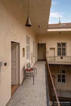 Haštalská, Praha 1 - Staré Město U Modré boty - byt, který Prahu nezobrazuje. Žije v ní. Dům stojí od 15. století. Turisté chodí kolem, ale dovnitř nevstoupí - průjezd s kamennou dlažbou, schodiště s litými balustrádami a obnažené zdivo jsou každodenní realitou těch, kdo tu bydlí. Dům je součástí Pražské památkové rezervace UNESCO a prošel citlivou rekonstrukcí - ne aby vypadal historicky, ale protože historický je. Dvůr. Tichý, zelený, se vzrostlým stromem uprostřed. Ve středu Prahy místo, kde neslyšíte město. Průjezdová vrata vedou do uličky Za Haštalem - jedno z nejskrytějších středověkých zákoutí Starého Města, které většina Pražanů nezná. Pavlač. Než vkročíte do bytu, zastavíte se tady. Stolek, dvě křesílka, výhled do dvora. Ranní káva nebo večerní víno - venku, a přitom soukromě. Nikdo sem nevidí. Za pavlačí samostatný pokoj s oknem do dvora a vestavěnou skříní. Pracovna, pokoj pro hosty - rozhodnete sami. Pak obývací pokoj s kuchyňským koutem. Dvě kastlová okna s hlubokými špaletami otevřená do Haštalské ulice - ráno tudy nikdo nespěchá, turisté ji nenajdou, zní tu kroky. Kuchyň je vyrobena na míru: lednice s mrazákem, myčka, trouba, varná deska. Na podlaze původní parkety, nově renovované v roce 2024. Z obývacího pokoje do ložnice - stejná kastlová okna, stejný dialog s ulicí. Přilehlá koupelna se sprchovým koutem, toaletou a pračkou. V suterénu sklepní kóje 1,5 m2. Dům je pozoruhodně suchý - vzácná věc u stavby tohoto stáří a hloubky. Měsíční náklady do 5 000 Kč. Pro koho je tento byt? Pro toho, kdo chce bydlet v Praze - ne jen v ní přespávat. Pro advokáta, který ocení adresu. Pro expatа, který se vrací a hledá domov s příběhem. Pro milovníka staré Prahy, kterému záleží na tom, čím prochází každé ráno. Anežský klášter je za rohem, metro na dosah ruky, kolem restaurace, kavárny, galerie. Investiční potenciál. Lokalita ve středu UNESCO zóny, pět minut pěšky od Staroměstského náměstí, vlastní pavlač a autentická historická atmosféra - to jsou přesné parametry, které na trhu krátkodobých pronájmů dlouhodobě generují nadprůměrnou obsazenost a výnosy. Byt splňuje veškeré předpoklady pro úspěšný provoz na platformách jako Airbnb. Ale hlavně: jsou místa, která se vysvětlují těžko. Tohle je jedno z nich. Přijďte se podívat. Dispozice: 3+kk | Podlaží: 2. NP | Plocha: 50,5 m2 | Sklep: 1,5 m2 |
