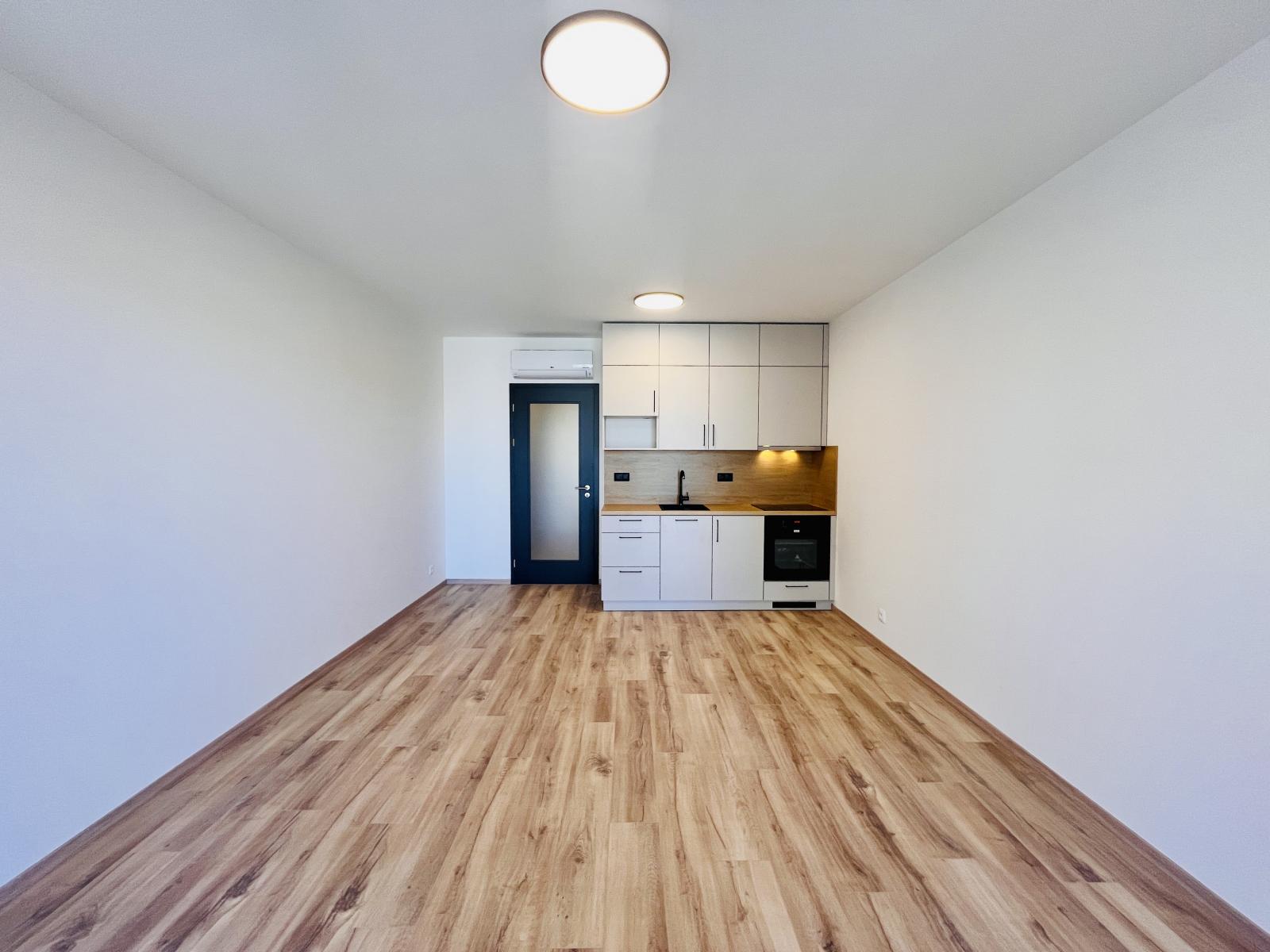 Nabízíme k pronájmu útulný a světlý byt 1+kk v přízemí moderního domu, jehož největší předností je velkorysá terasa (10 m2) s navazující zahradou (40…