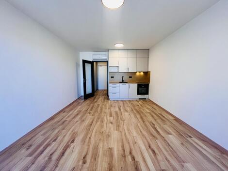 Pronájem nového bytu s lodžií 1+kk 36 m2 s garážovým stáním v moderní rezidenci Tesla Hloubětín, Praha 9