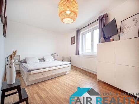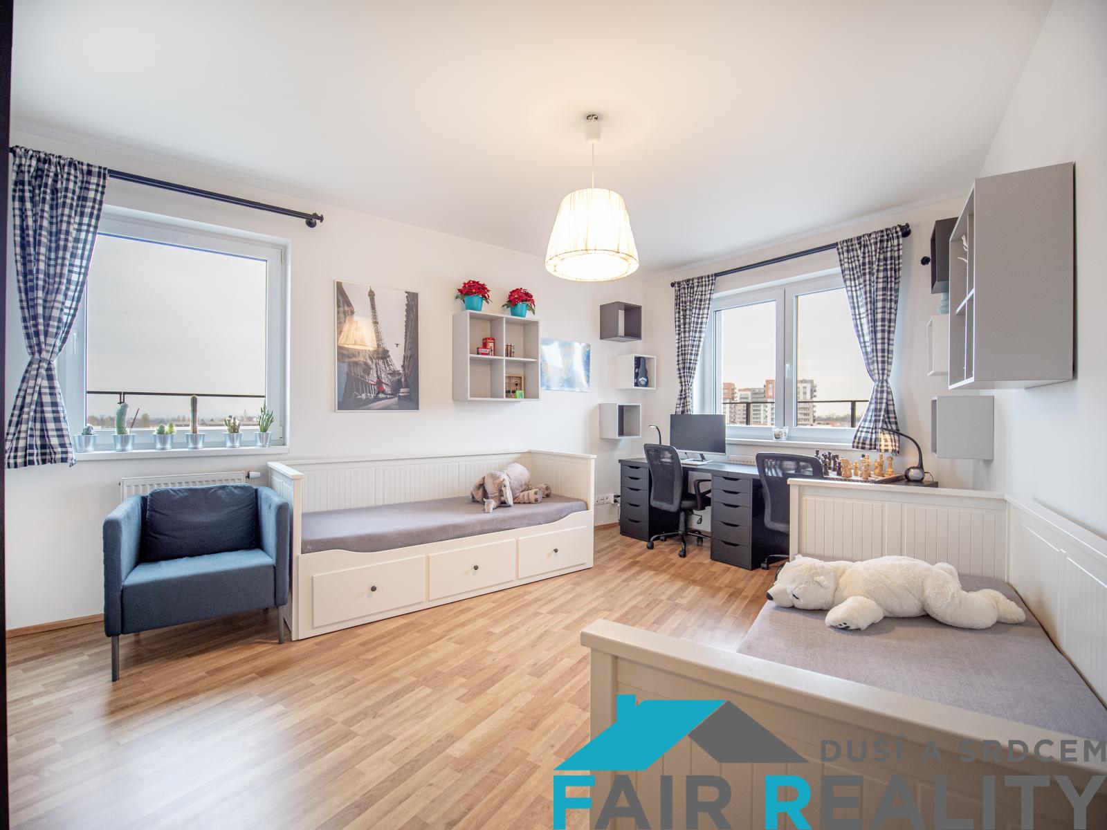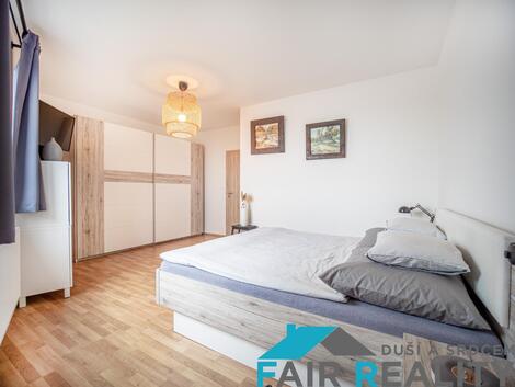 Nabízíme k prodeji jedinečný byt o ploše 91 m s prostornou terasou, situovaný v posledním patře moderní novostavby v klidné ulici Škrábkových, Praha 9 Letňany. Díky umístění v nejvyšším podlaží máte zajištěné naprosté soukromí, nádherný výhled a přímý přístup na terasu o ploše 9,5 m, která je ideální pro odpočinek, rodinné posezení nebo letní grilování. Dispozice a vybavení - Byt je nyní řešen jako 3+kk, avšak díky své velkorysé ploše a promyšlenému půdorysu umožňuje jednoduchou úpravu na 4+kk skvělá volba pro rostoucí rodinu či ty, kdo hledají více prostoru. - Dominantou bytu je prostorný a prosvětlený obývací pokoj, který je plynule propojen s moderní kuchyňskou linkou na míru. - Dvě samostatné ložnice poskytují maximální komfort, klid a dostatek soukromí. - Koupelna je vybavena rohovou vanou, umyvadlem a toaletou, přičemž k dispozici je i další samostatná toaleta praktické řešení pro vícečlennou domácnost. - Všechny místnosti působí vzdušně, svěže a elegantně, s jednotným moderním stylem, který dodává interiéru harmonii a útulnost. K bytu dále náleží garážové stání a sklep, který je umístěn přímo za parkovacím místem. Výhody lokality Letňany - Výborná dopravní dostupnost: autobusová zastávka pár minut chůze, metro Letňany (C) do centra Prahy cca 20 minut. - Kompletní občanská vybavenost: školy, školky, zdravotnická zařízení, pošta, lékárny. - Nákupy a volný čas: OC Letňany obchody, restaurace, kino, aquapark, fitness centrum. - Sport a relaxace: Lesopark Letňany nabízí skvělé možnosti pro sport, procházky i rodinné aktivity. Proč právě tento byt? - Flexibilní dispozice: 3+kk s možností úpravy na 4+kk. - Soukromí a klid: poslední patro se skvělým výhledem a terasou. - Možnost parkování: garážové stání se sklepem. - Moderní design: byt je vkusně zařízen a připraven k nastěhování. - Strategická poloha: klidná lokalita s rychlou dostupností do centra Prahy. Tento byt je ideální volbou pro rodinu, pár i investory, kteří hledají komfortní, prostorné a variabilní bydlení v oblíbené pražské lokalitě. Domluvte si prohlídku ještě dnes rádi vám byt osobně ukážeme!