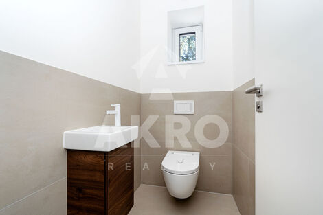 Nabízím k prodeji moderní novostavbu v energetické třídě B s FVE o výkonu 6kWp - pohodlný a praktický rodinný byt o celkové ploše 139,7m2 , dispozice - 4kk řešen ve dvou patrech s terasou, zahrádkou 174m2 a suterénem 18,7m2 s oknem do anglického dvorku. K bytu náleží dvě parkovací stání na pozemku pod uzamčením + k dispozici jedno venkovní stání pro návštěvy. Na parcele se nachází komorní stavba - skládající se ze dvou samostatných a oddělených bytových jednotek, které obklopuje zeleň. Dispozice: vstupní chodba s denním světlem, hala s nikou pro velkou šatní skříň + šatna s oknem, samostatná toaleta s integrovaným sprchovacím WC Aqua Clean Geberit - základní funkce přes dálkové ovládání nebo pomocí aplikace přes telefon. Do centrální obytné místnosti je vstup přes skleněné posuvné dveře do pouzdra. Denní zóna propojuje kuchyň se spíží, jídelní kout a obývací pokoj do jednoho otevřeného prostoru plného světla se vstupem na terasu a dále do prodlouženého, rozšířeného (zeleného pokoje) - zahrady, která je oddělena od ulice již vzrostlým živým plotem a poskytuje příjemné soukromí. Velká balkonová okna v obývací části stírají hranici mezi interiérem a exteriérem. V patře jsou tři samostatné pokoje - dvě ložnice a pracovna, technická místnost s napojením pro pračku a sušičku, samostatná toaleta s integrovaným sprchovacím WC Aqua Clean Geberit. Koupelna - italská velkoformátová keramická dlažba a obklady La Ceramica odst. sand. Sprchový kout s termostatickou nástěnnou baterií, samostatně stojící vyhřívaná vana a dvě umyvadla bez přepadu na koupelnové skříňce se čtyřmi komfortními zásuvkami - dekor teakového dřeva, elektrický radiátor - nahřívač ručníků. Koupelna a toalety jsou vybaveny kvalitním zařízením od značek Hansgrohe, Hüppe, Laufen, Geberit. Koupelnový nábytek je od české firmy Dřevojas s doživotní zárukou zásuvek InnoTech s měkkým dovíráním Silent System zn.Hettich. Všechny místnosti v patře mají výhledy z oken do korun stromů a proudí tak světlo a sluníčko ze tří světových stran, které dodává pokaždé jinou a příjemnou atmosféru. Na stavbu byly použity nejkvalitnější materiály, v obytných částech jsou podlahy z prémiové kolekce rigidní vinylové SPC 50 plus Herringbone, design dub Cara- (100% voděodolnost, certifikát zdravotní nezávadnosti Floor Score a CE), okna a vstupní dveře - nejmodernější úzké profily - s ocelovou výztuhou Forthex, odolnost proti vloupání certifikát RC2, vynikající tepelně izolační vlastnosti, 6-ti komorový systém. Design okenních a dveřních profilů: exteriér antracit grey/ interiér bíla, vnitřní parapety bílé zn. Helopal. Video telefon zn. Hinkvision v obou patrech. Venkovní okenní stínící technika - žaluzie jsou umístěny v purenitových boxech pod omítkou, ovládané přes mobilní aplikci TaHoma, stejně jako el.vjezdová vrata přes - TaHoma. Silikonová fasádní barva Weber. V suterénu je umístěna veškerá technologie - tepelné čerpadlo, 300l bojler, datový rozvaděč, regulace FVE. Vytápění a ohřev vody přes tepelné čerpadlo voda vzduch v kombinaci s FVE řízené přes aplikaci LG ThinQ, FVE ušetří náklady za energie v průměru šesti měsíců v roce. Střešní FVE panely jsou natočeny na slunný jih ( instalace panelů v průběhu). Připravený kabel pro Wallbox. V zahrádce je umístěna jímka na dešťovou vodu s el. přípravou pro čerpadlo i automatickou závlahu. Domov je nejenom byt, ale sousedé, ulice i celá čtvrť. Klánovice jsou rezidenční lokalita obklopená lesy, v zimě vhodné i na běžky, přes rok cykloturistika, venkovní posilovny, dětská hřiště, naučné stezky, běh, procházky s dětmi i domácími mazlíčky. V místě základní škola, bezkonkurenční státní mateřská školka, vyhlášená pediatrická ordinace, soukromé školy i školky, tenisové kurty, fotbalové hřiště, krásné koupaliště a to vše v pěší dostupnosti. Pošta, fitnes centra, jógové studio, kulturní centrum, pilates, dům čínské medicíny, lékárny, lékařská zařízení, masáže, výborné restaurace, cukrárna, bistra, pizzerie, kadeřnictví, barber shop a další, 2km vzádlené retailové centrum, kde je Billa, Penny, Rossman, Teta, Hecht, Kik, Pepco a další. Doprava: autem nebo bus metro B Černý Most, vlakové nádaraží - vlakem 20 minut do centra města - Massarykovo nádraží. Krásné a bezpečné bydlení, kdo hledá klid a pohodu od ruchu velkoměsta. Další informace a prohlídku nemovitosti ráda poskytnu a budu se těšit na nové prima sousedy.